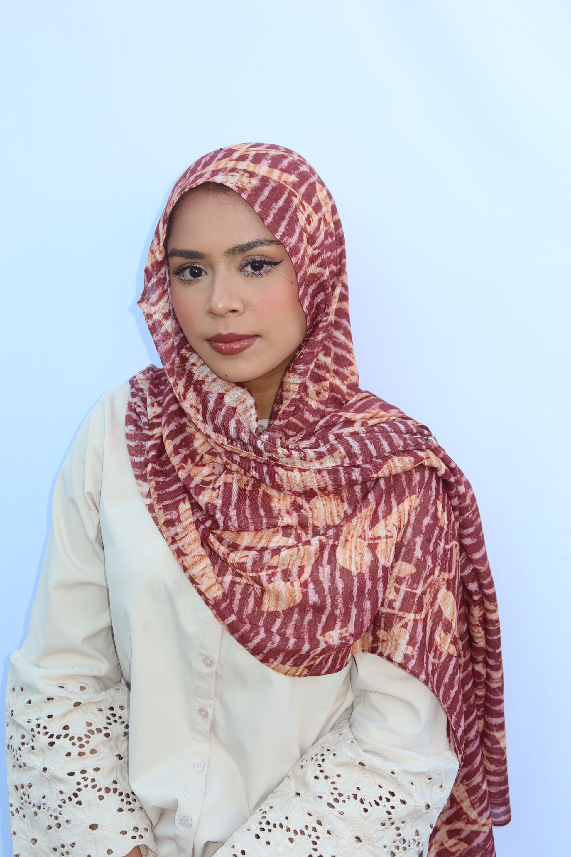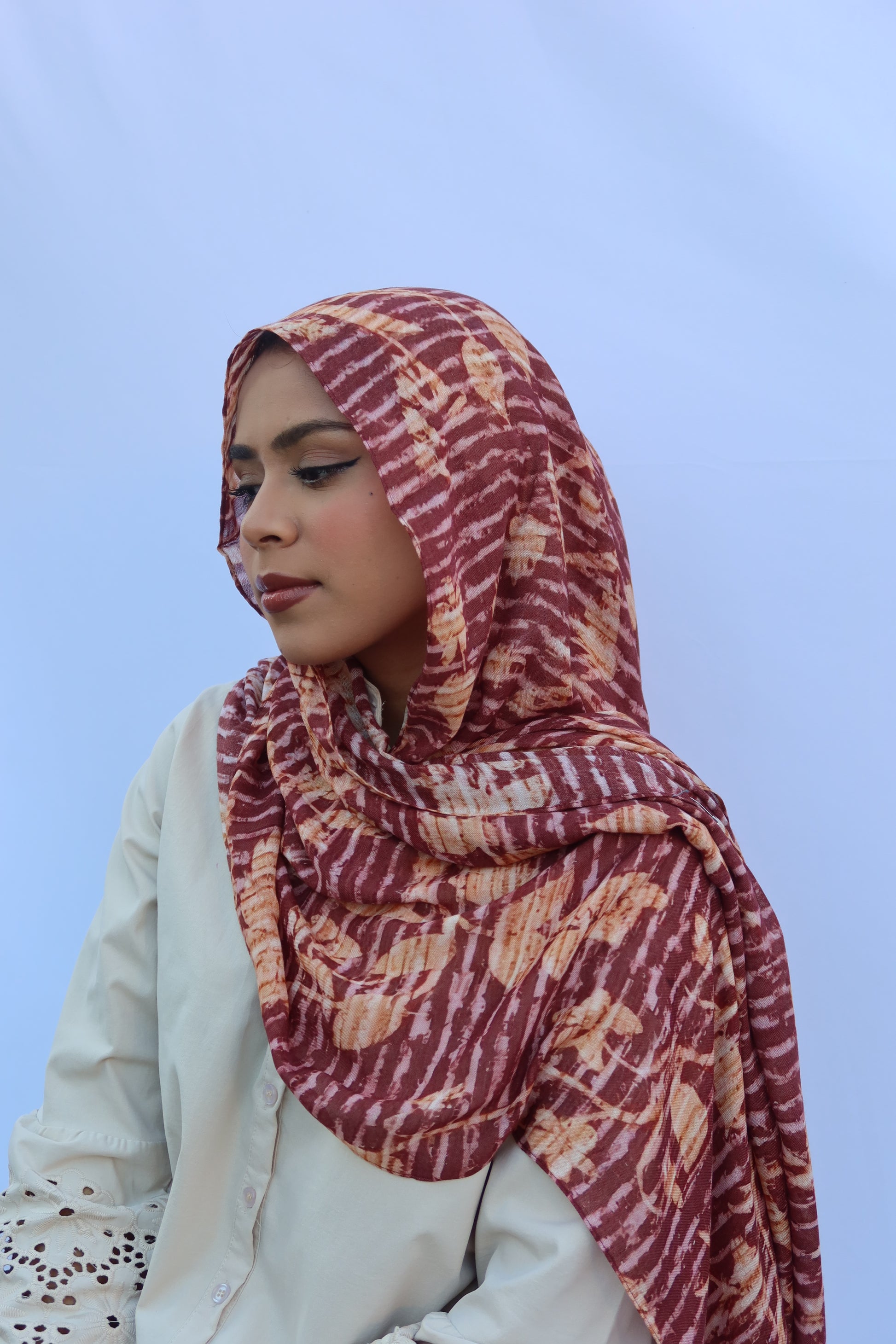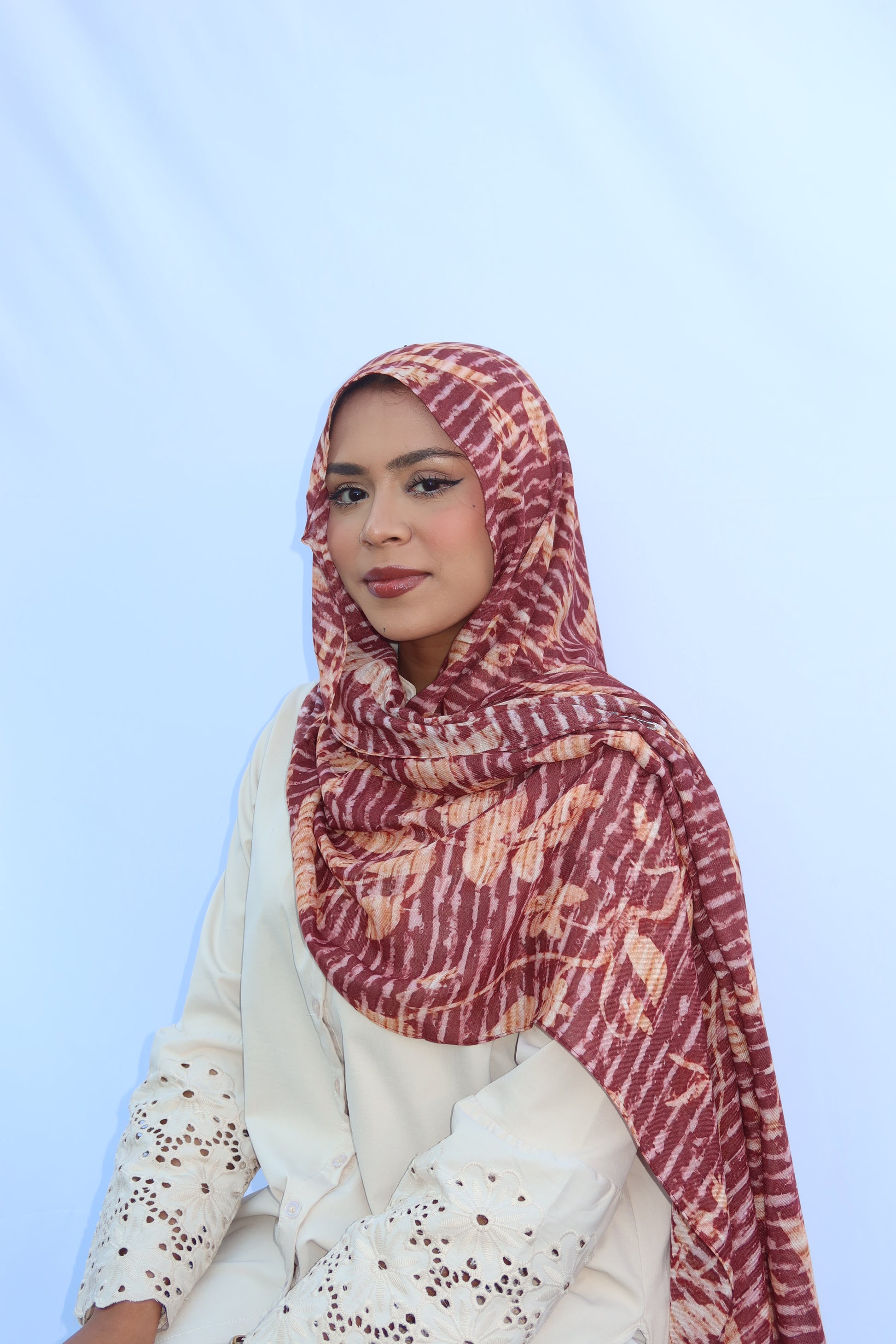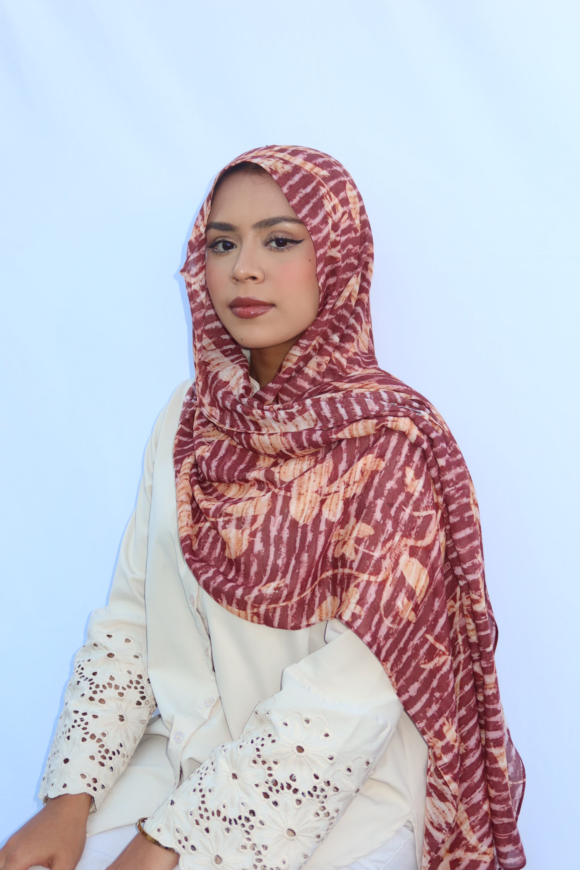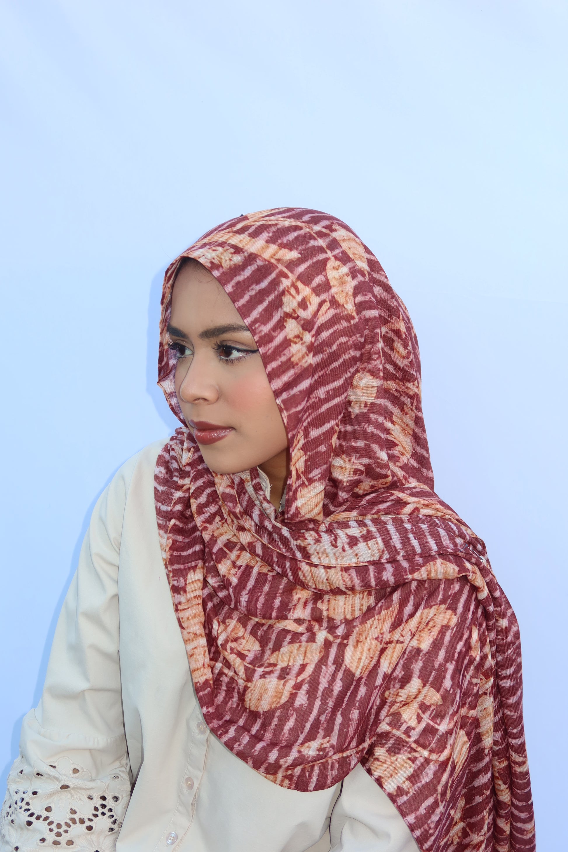 Autumn Ember: 🍂🍁✨🤎 This Print Has A Rich Maroon Base With Soft Golden Orange Leaves Spread Across. The Colors Match Every Skin Tone And Can Be Worn With So Many Outfits. It’s A Must-Have Piece For The Season! The Mix Of Maroon And Gold Orange Creates The Perfect Autumn Look.