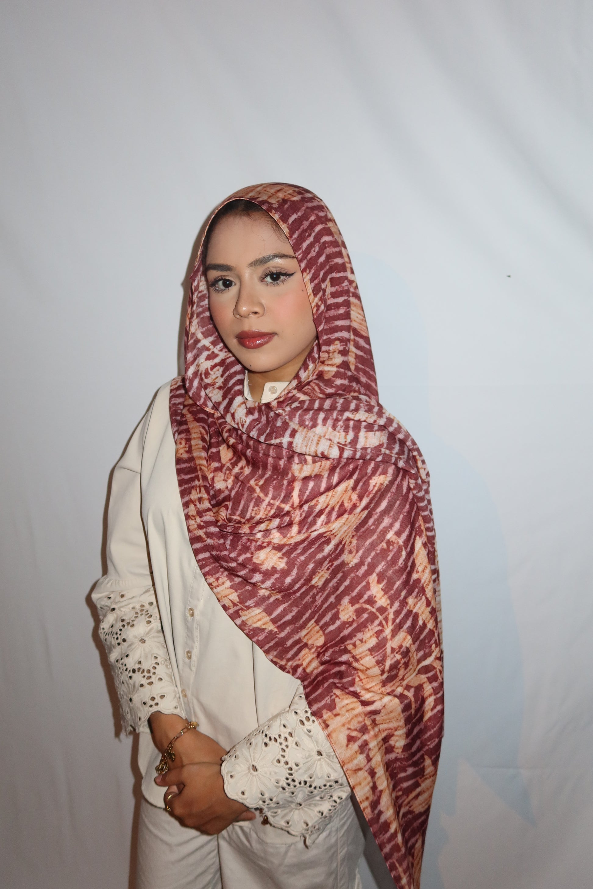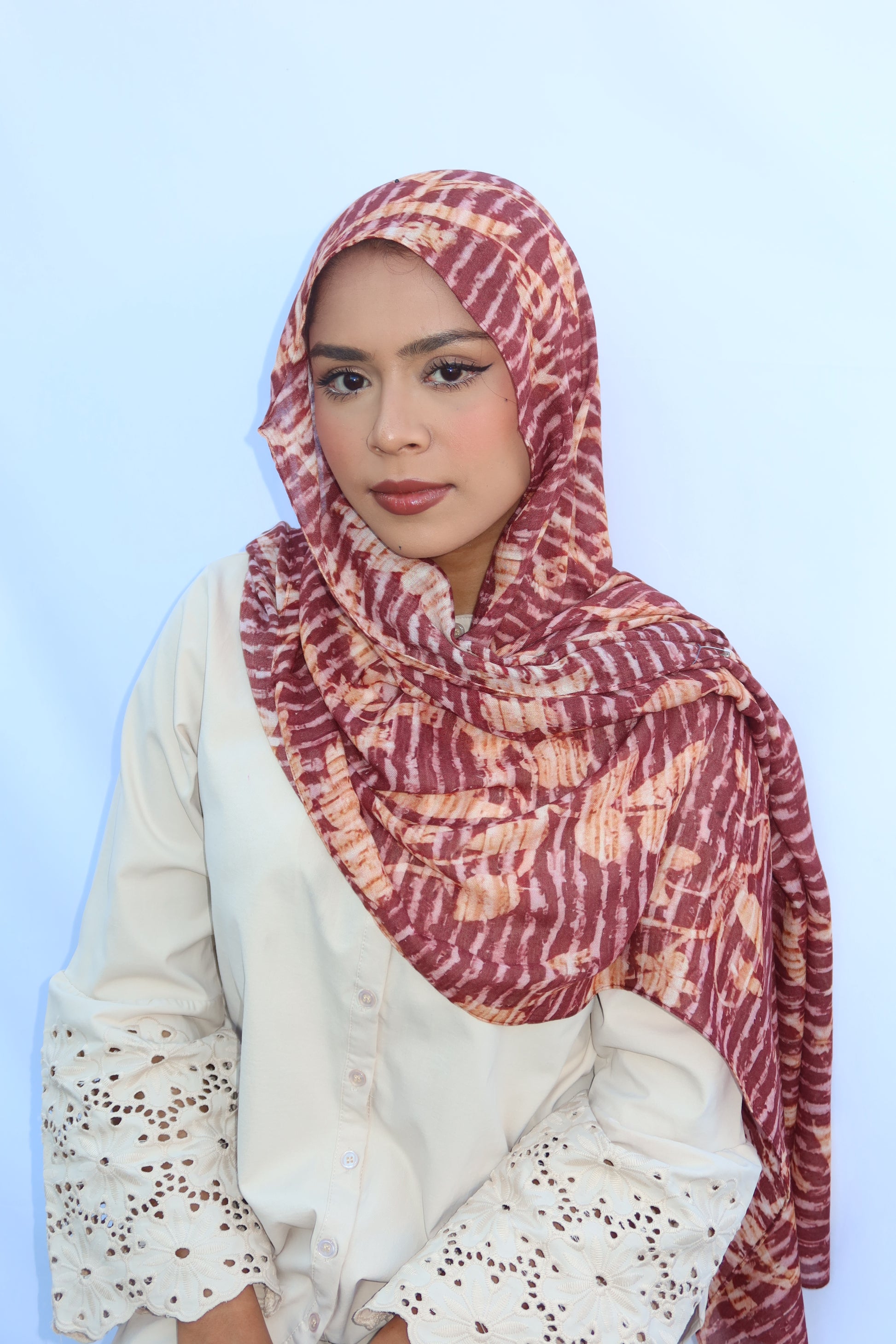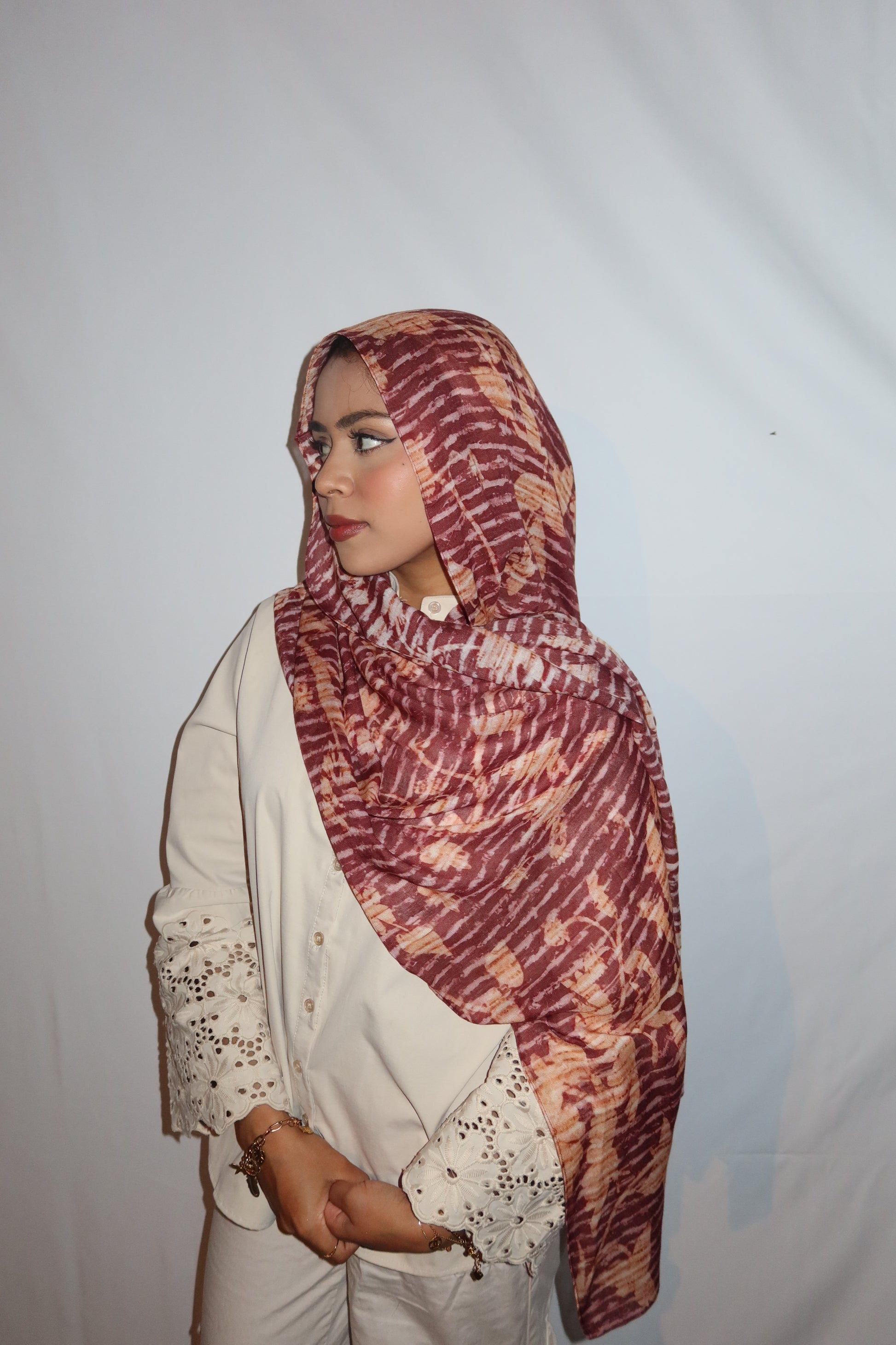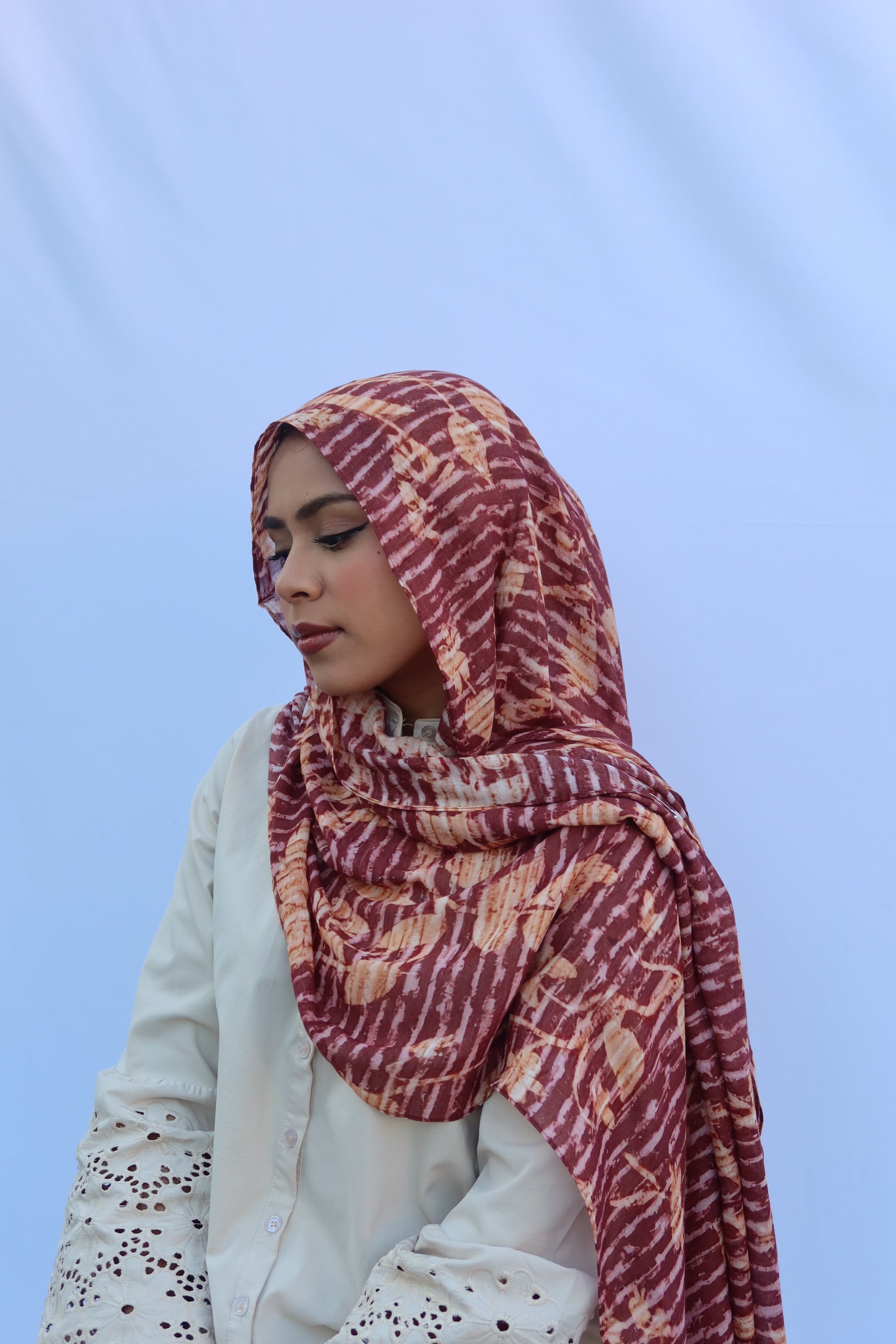 Autumn Ember: 🍂🍁✨🤎 This Print Has A Rich Maroon Base With Soft Golden Orange Leaves Spread Across. The Colors Match Every Skin Tone And Can Be Worn With So Many Outfits. It’s A Must-Have Piece For The Season! The Mix Of Maroon And Gold Orange Creates The Perfect Autumn Look.