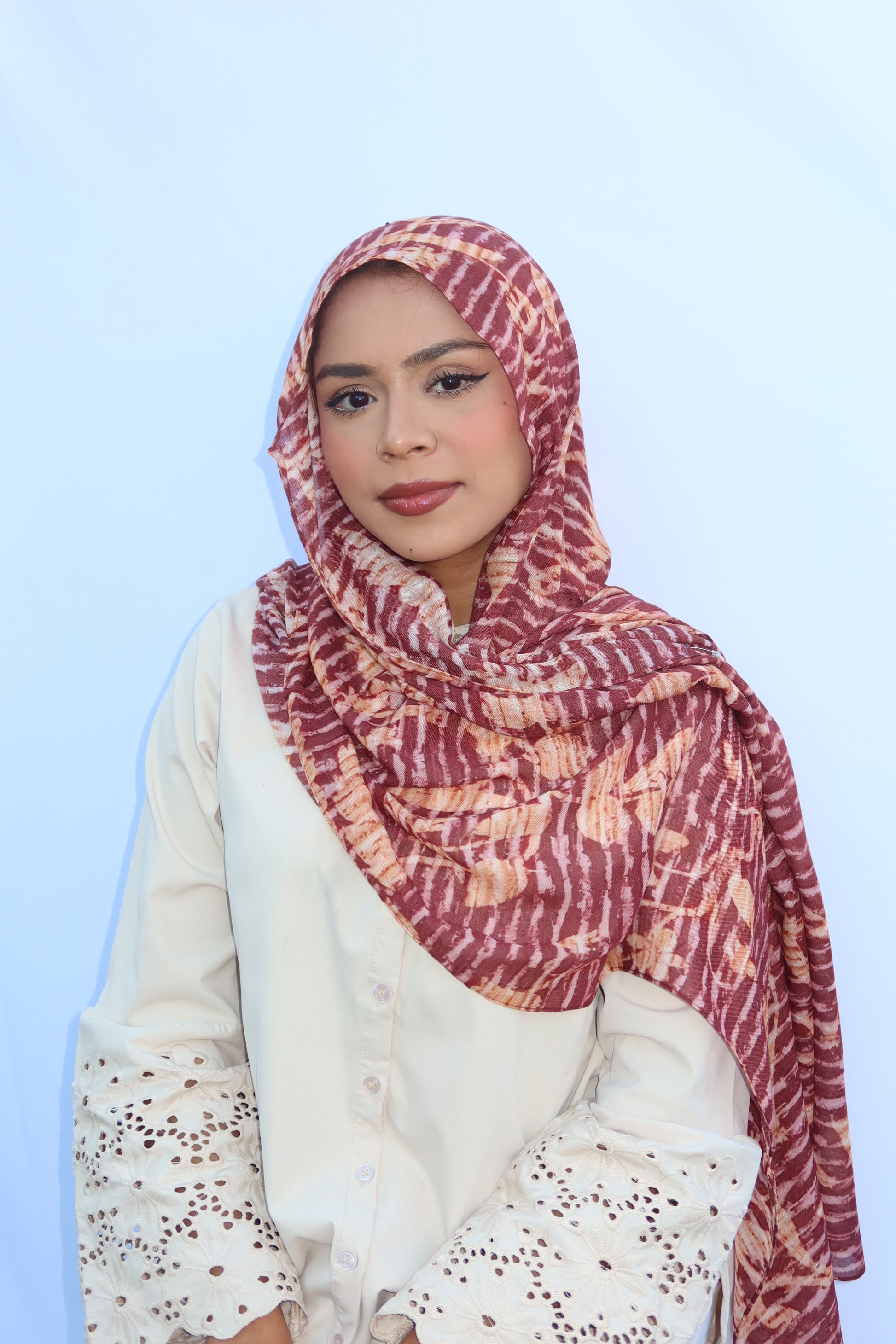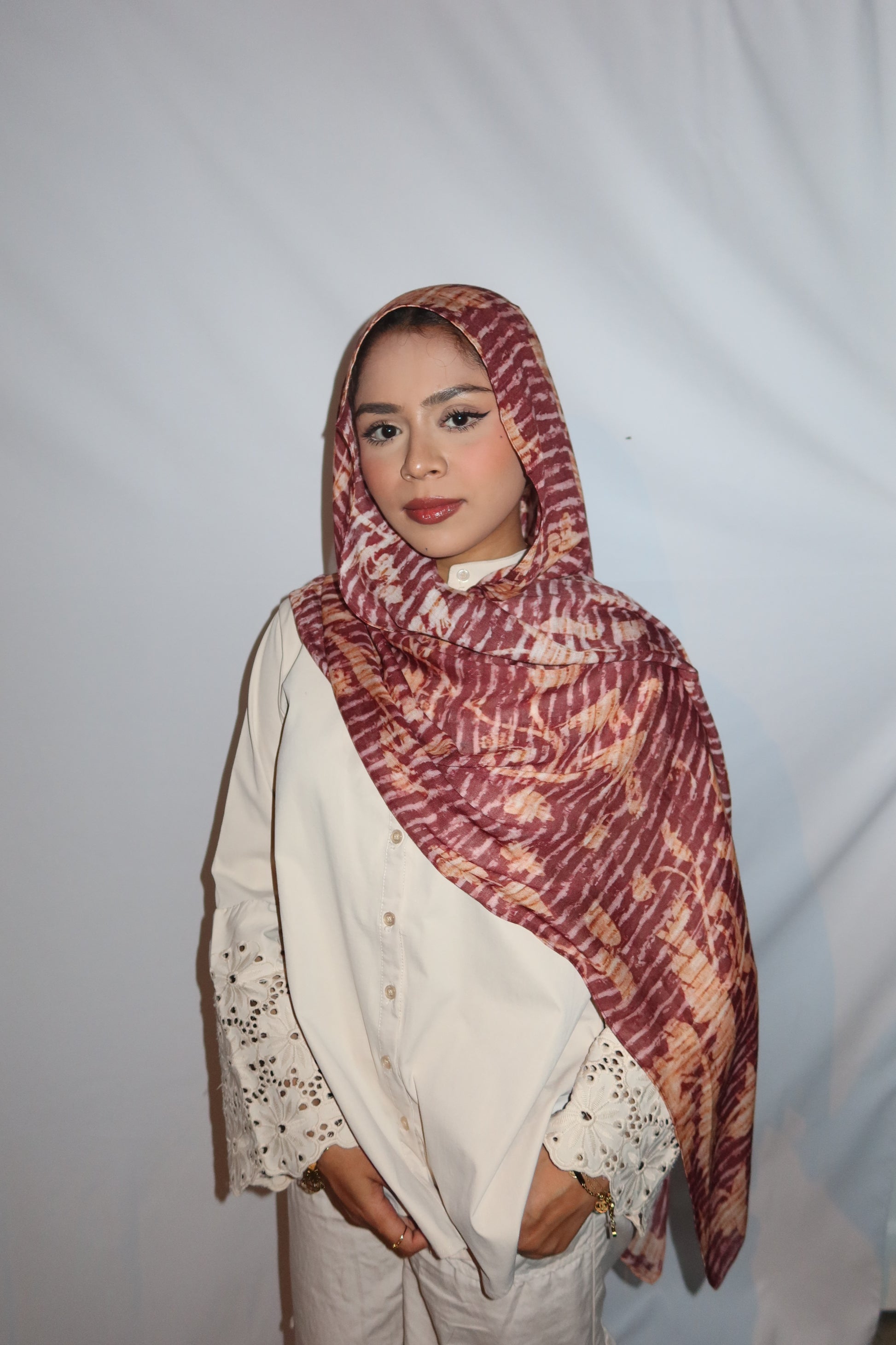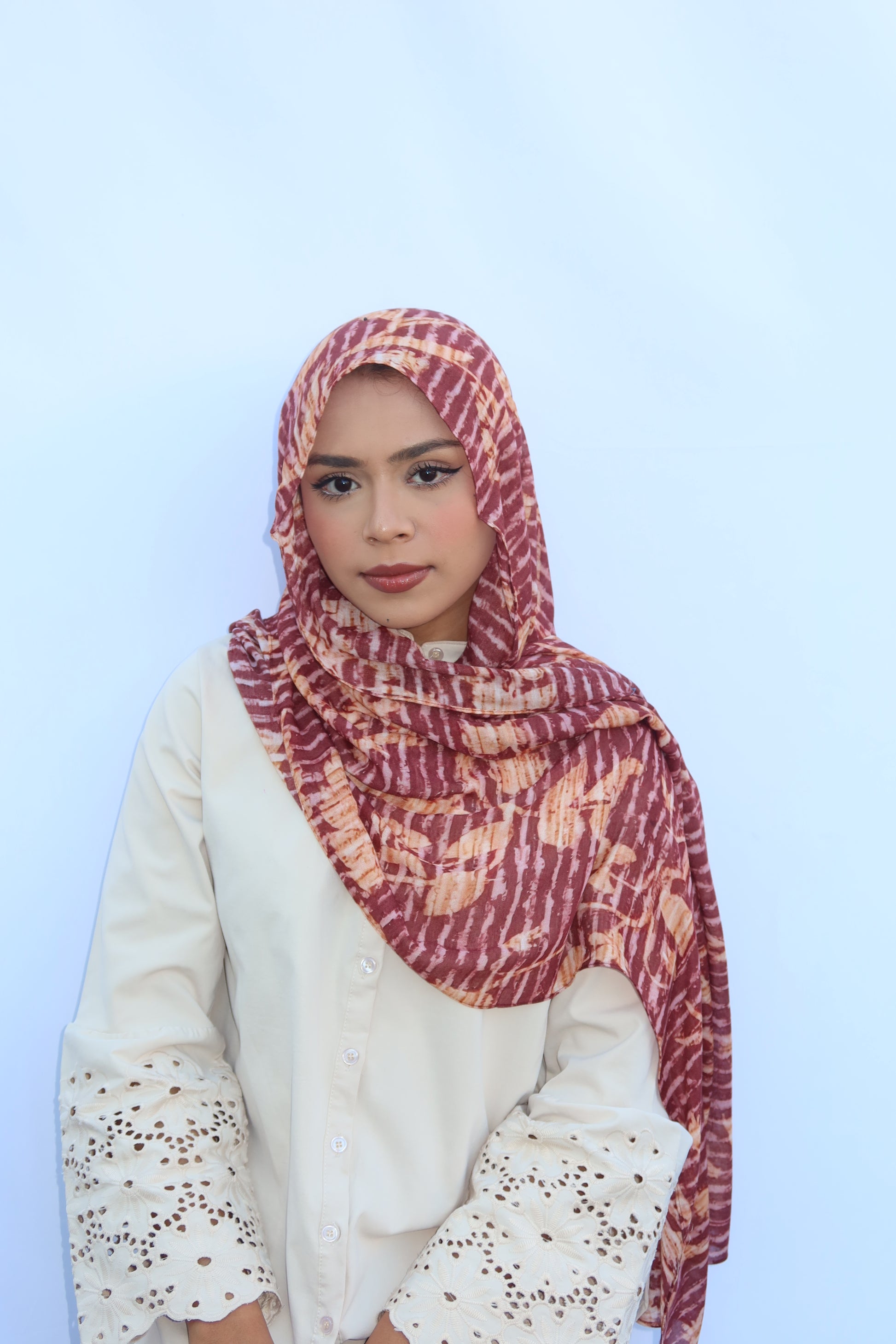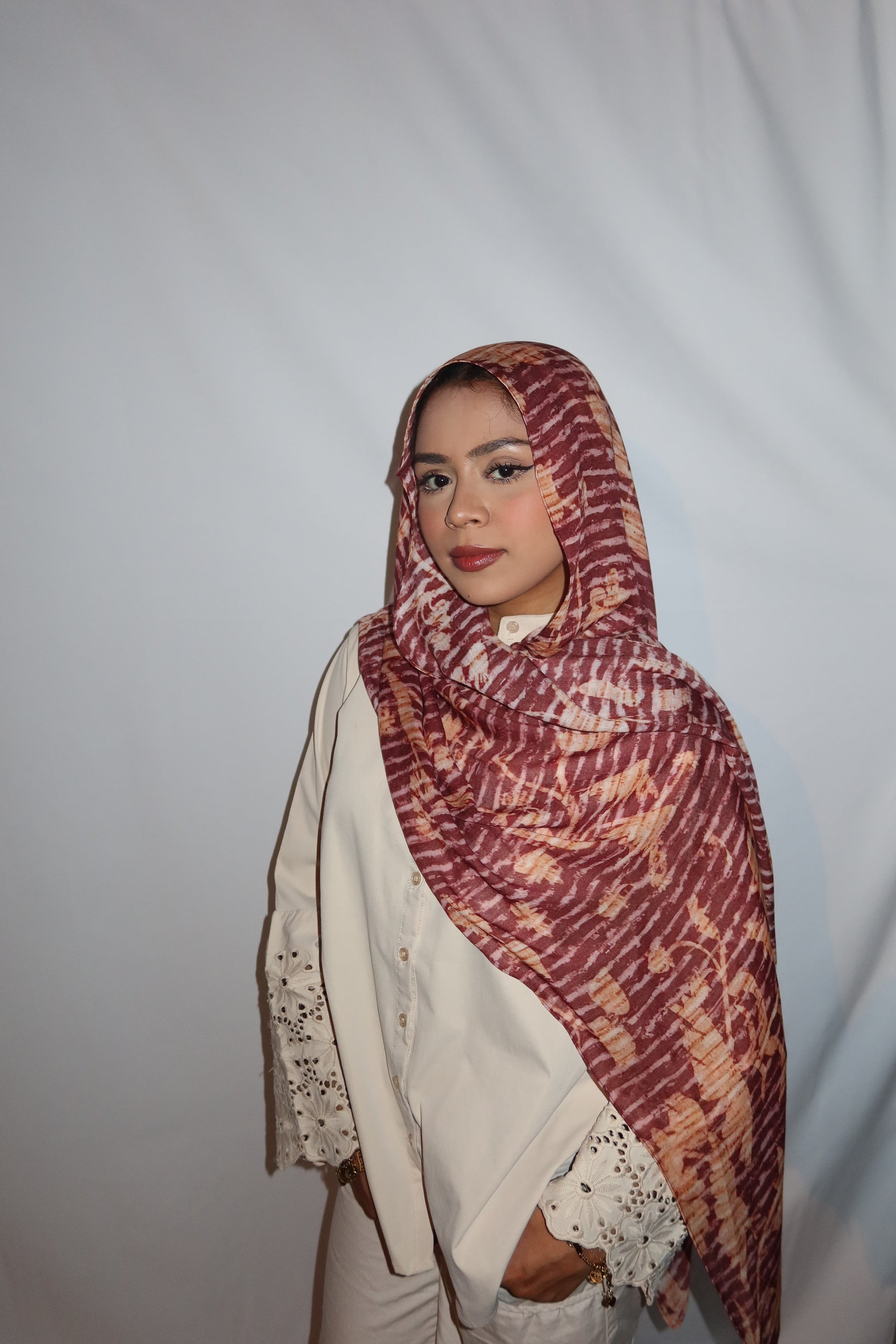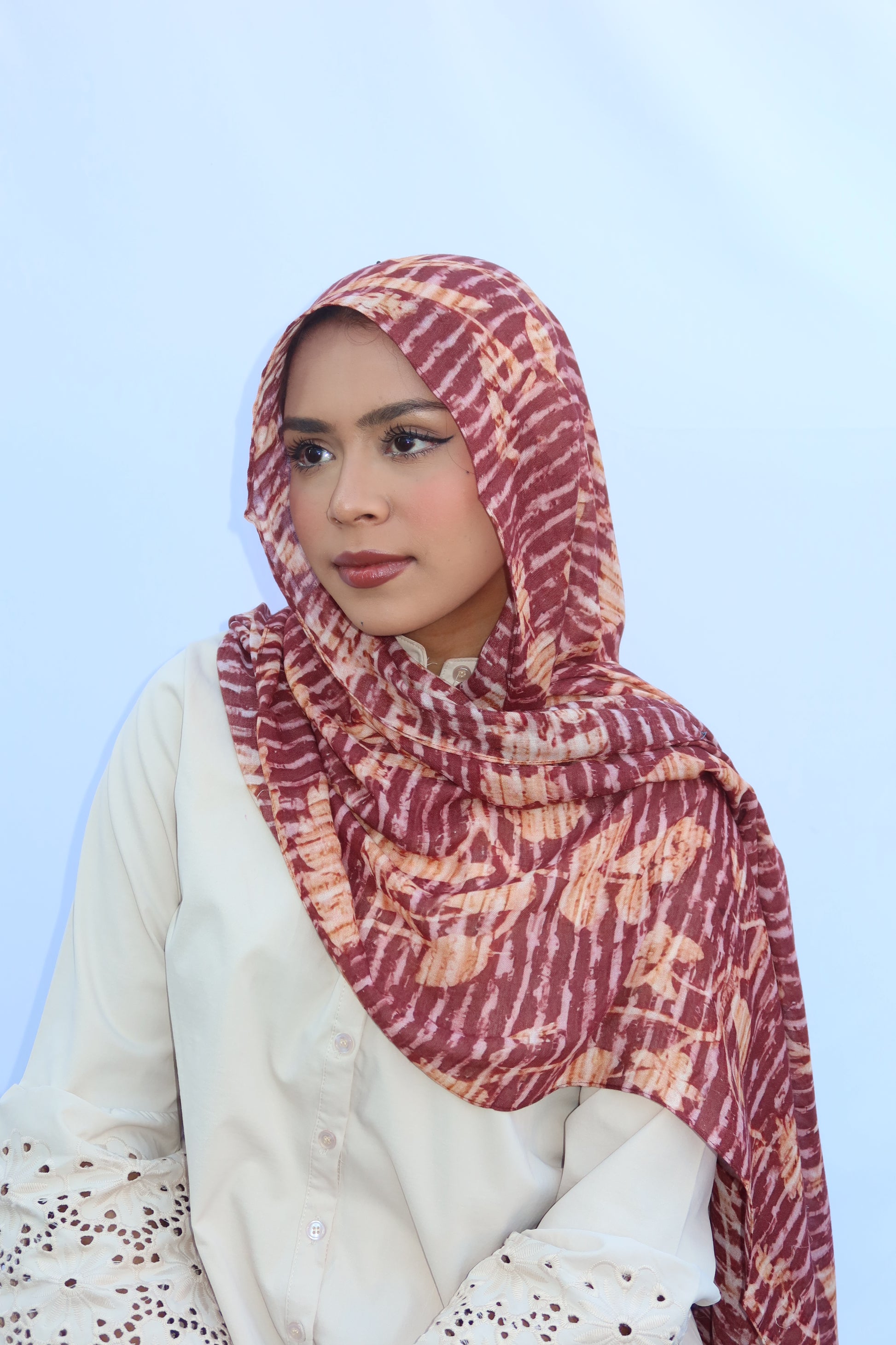 Autumn Ember: 🍂🍁✨🤎 This Print Has A Rich Maroon Base With Soft Golden Orange Leaves Spread Across. The Colors Match Every Skin Tone And Can Be Worn With So Many Outfits. It’s A Must-Have Piece For The Season! The Mix Of Maroon And Gold Orange Creates The Perfect Autumn Look.