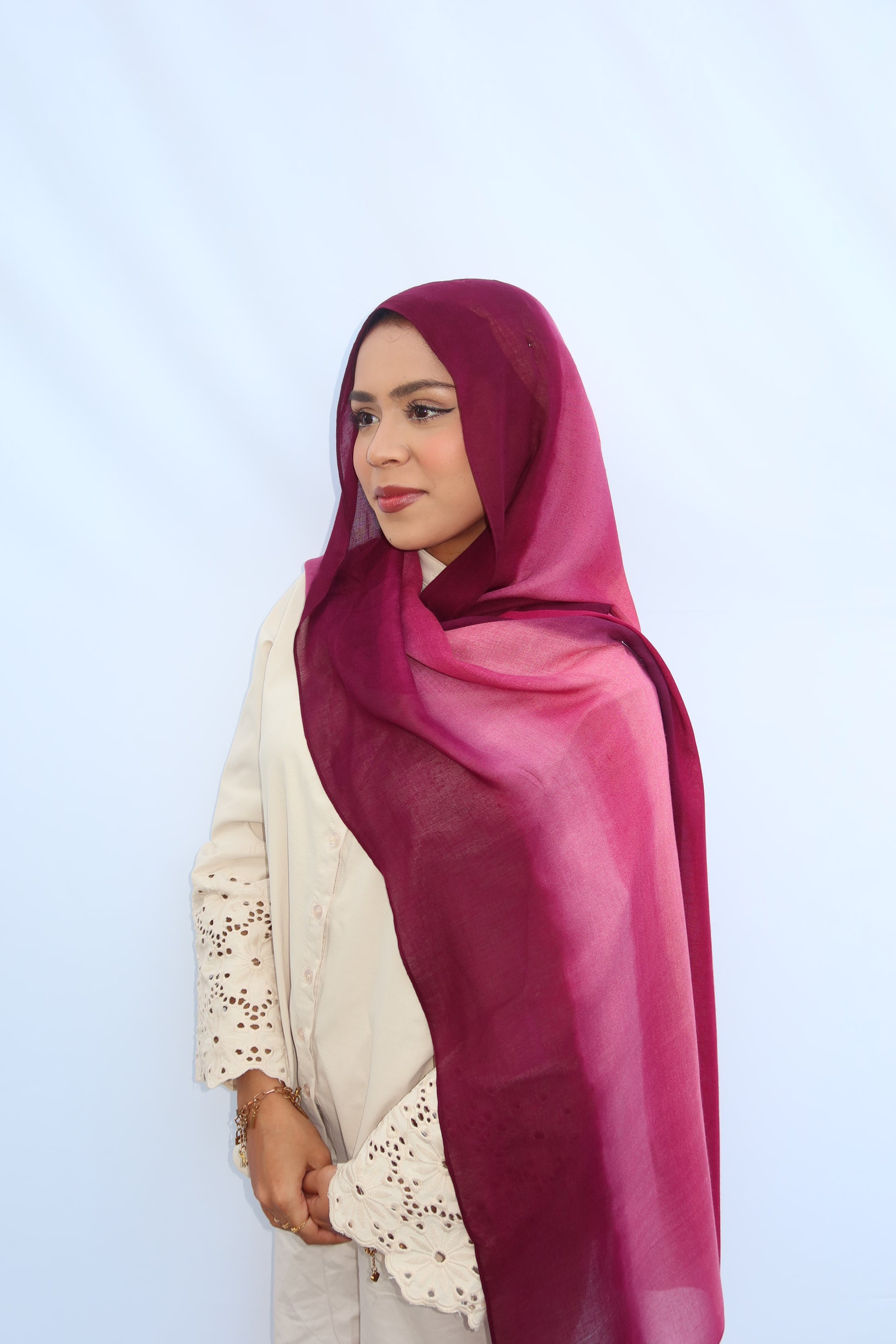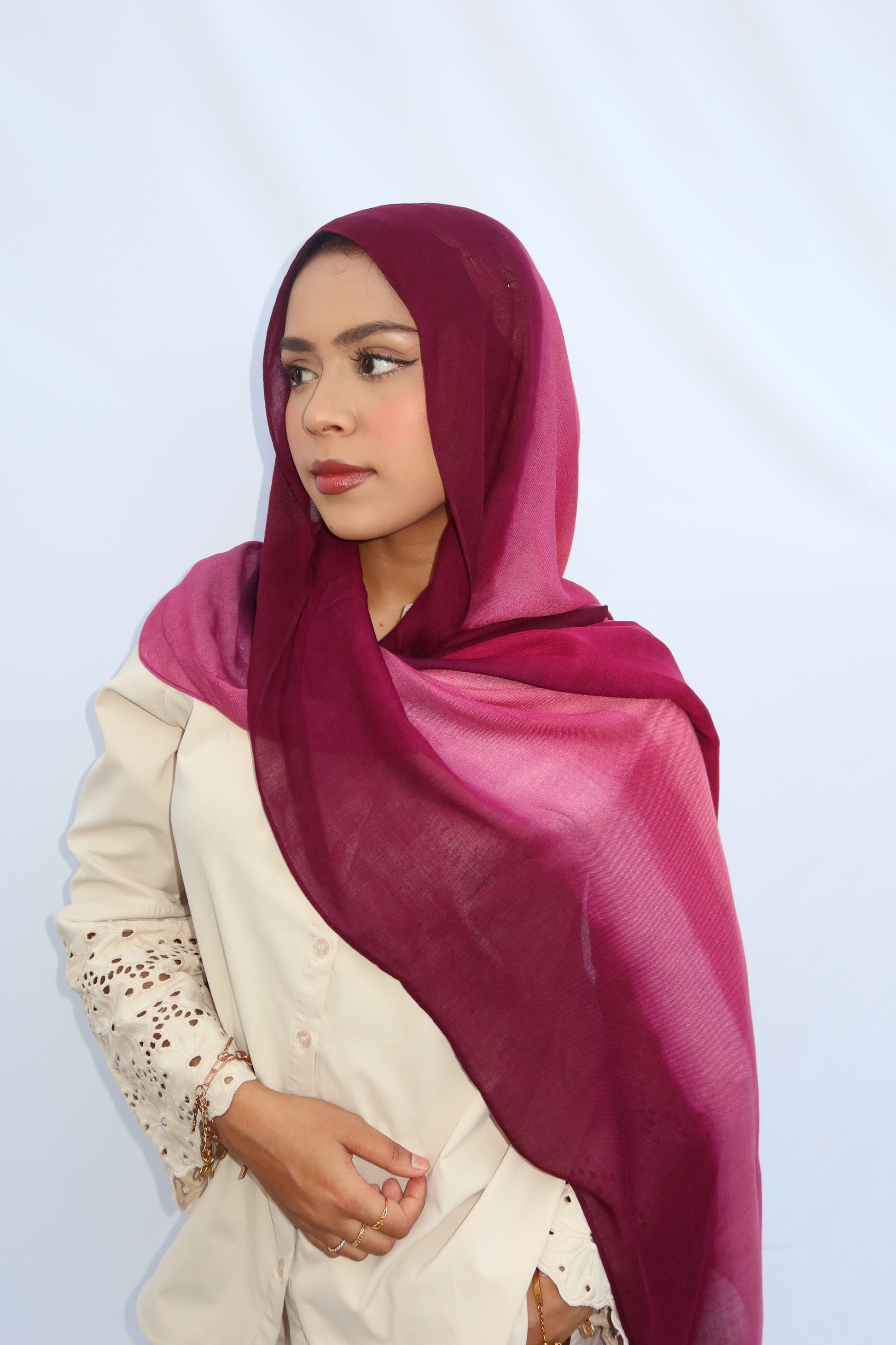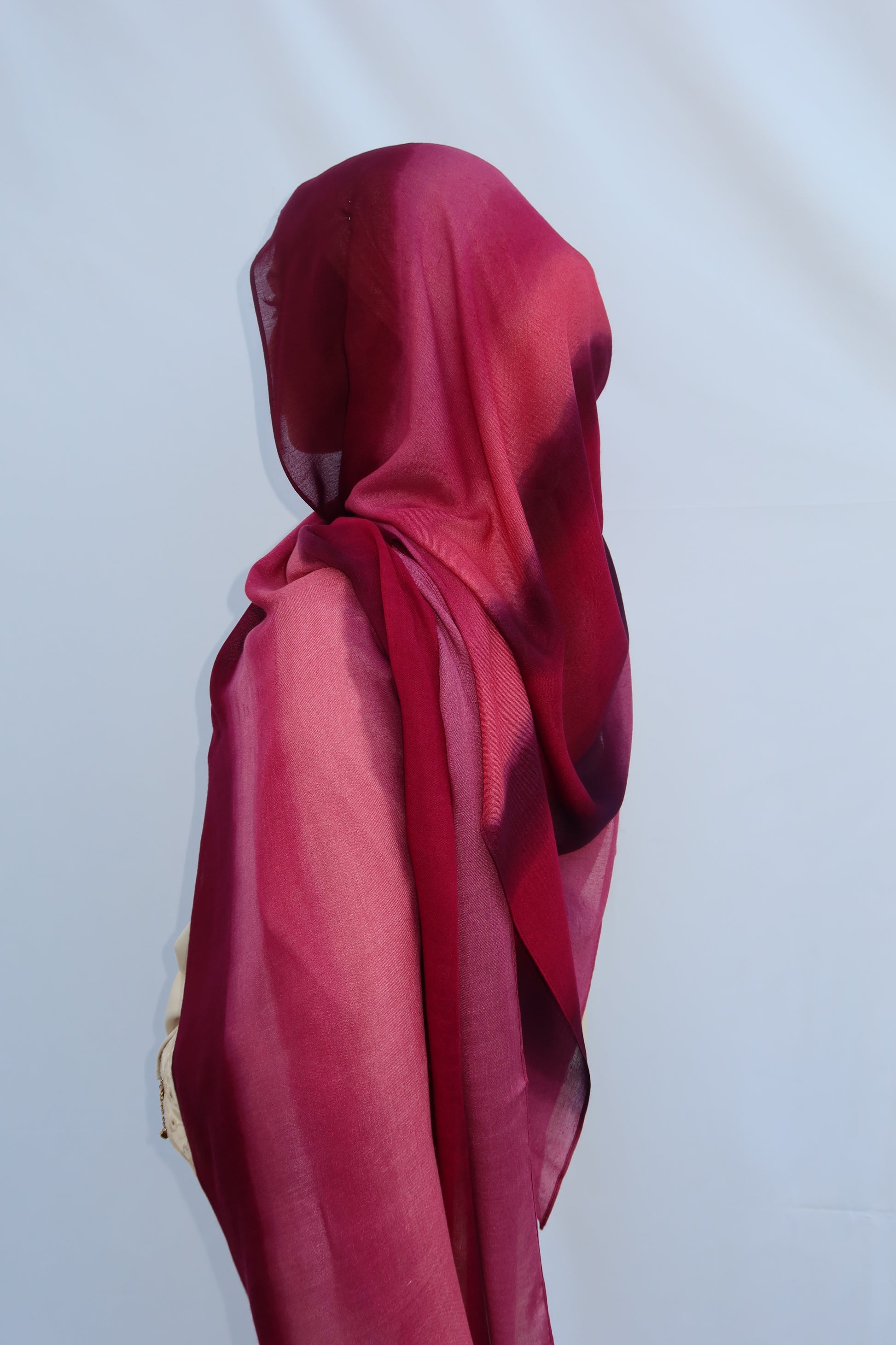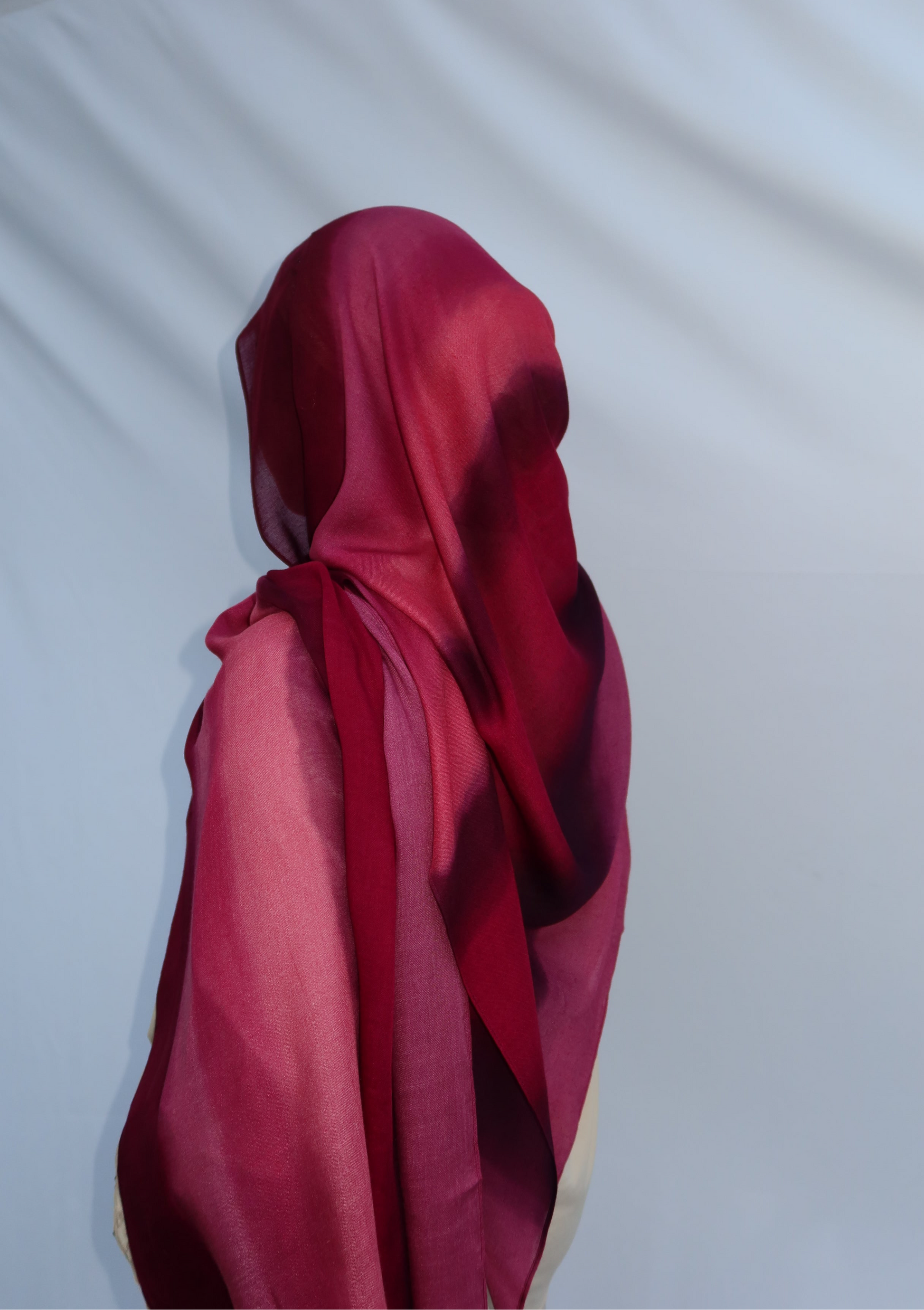 Berry Dusk: 🍓🍇🩷♥️ This Hijab Features A Soft Ombre Blend Of Deep Plum, Burgundy, Berry, And Pinkish Wine Tones That Flow Beautifully Together. The Gradient Shifts Seamlessly From Dark To Light, Giving It A Luxurious, Feminine Look. The Colors Blend In Together Beautifully And It’s The Prettiest Hijab Every Girl Needs!