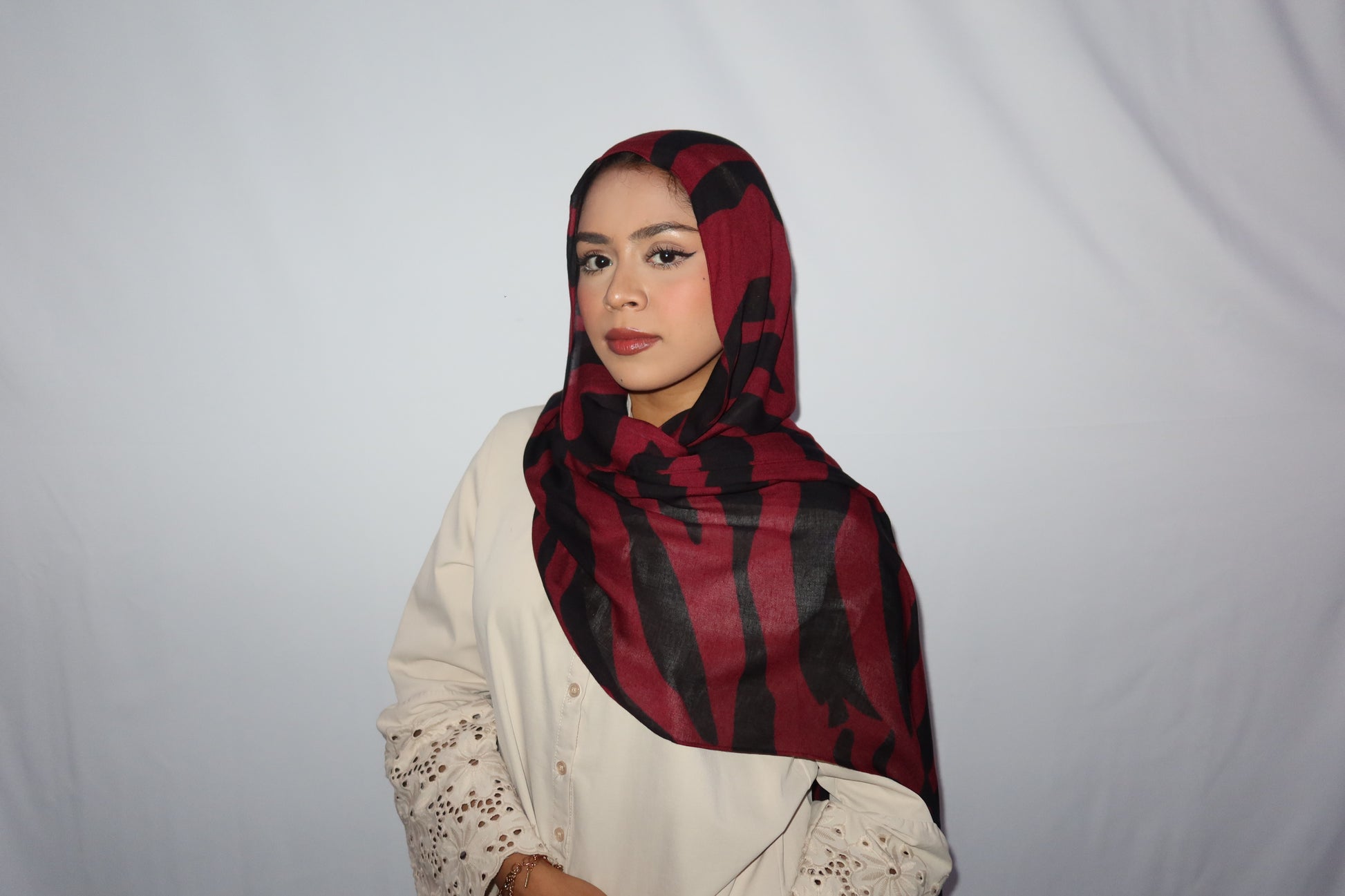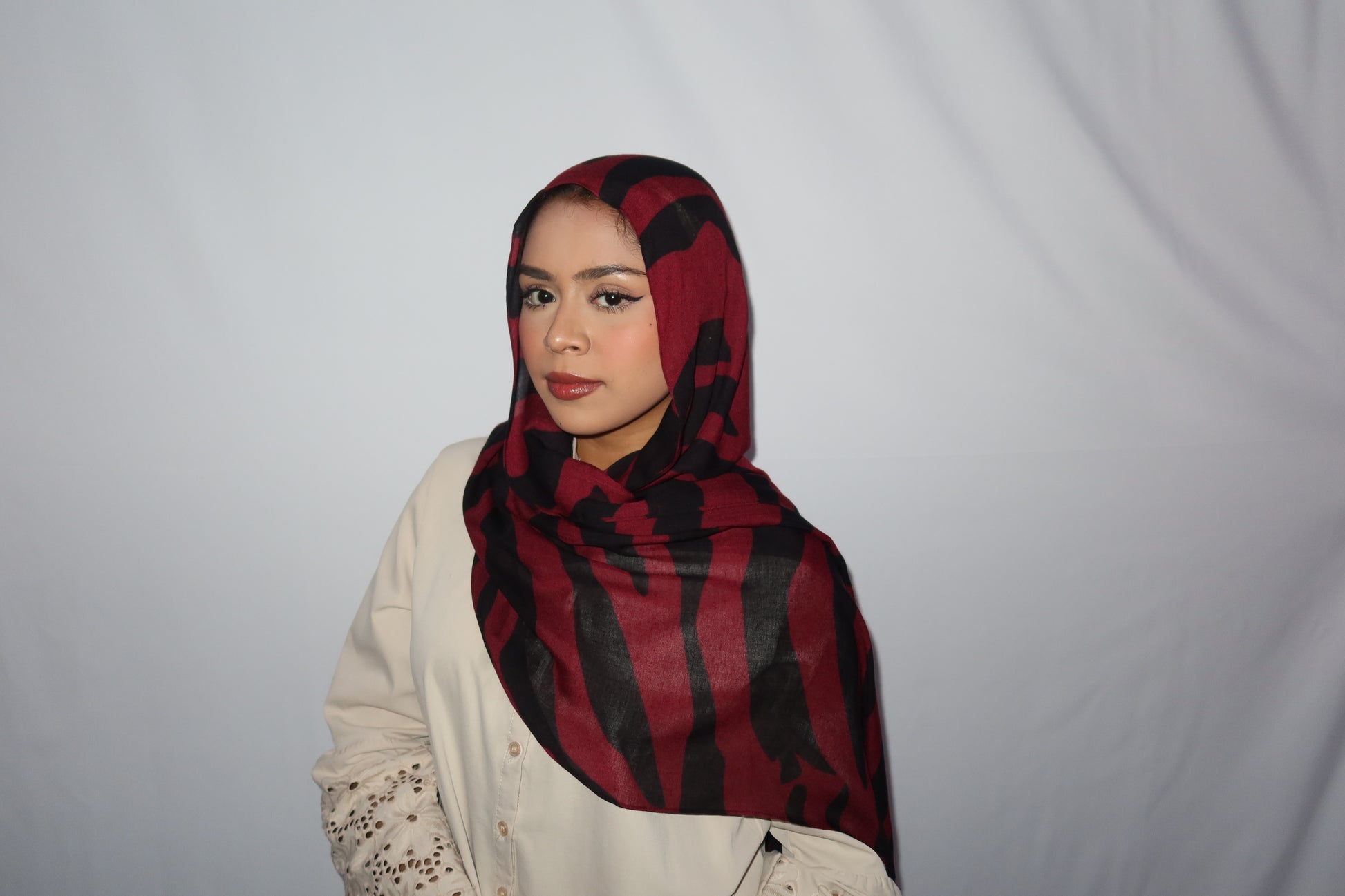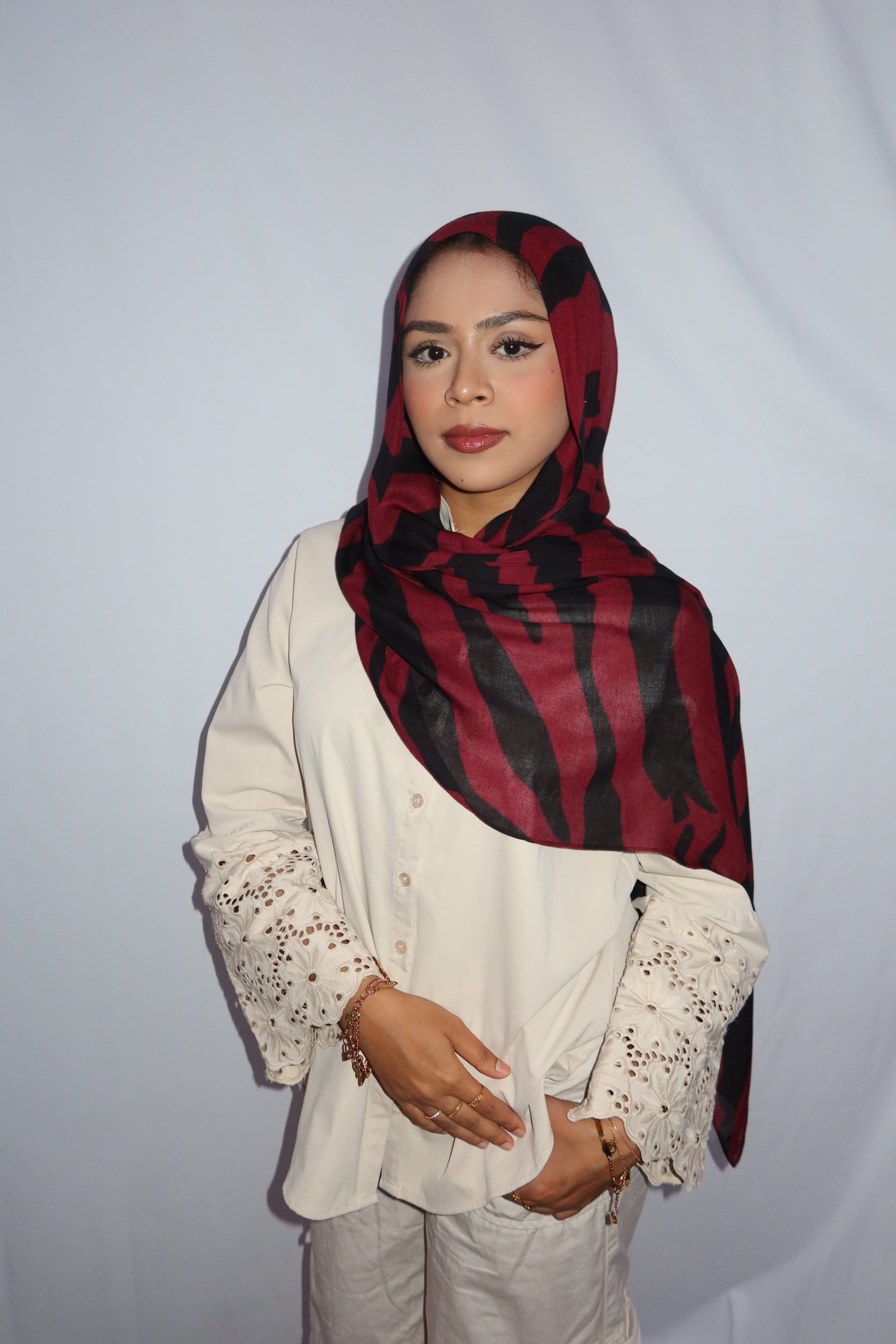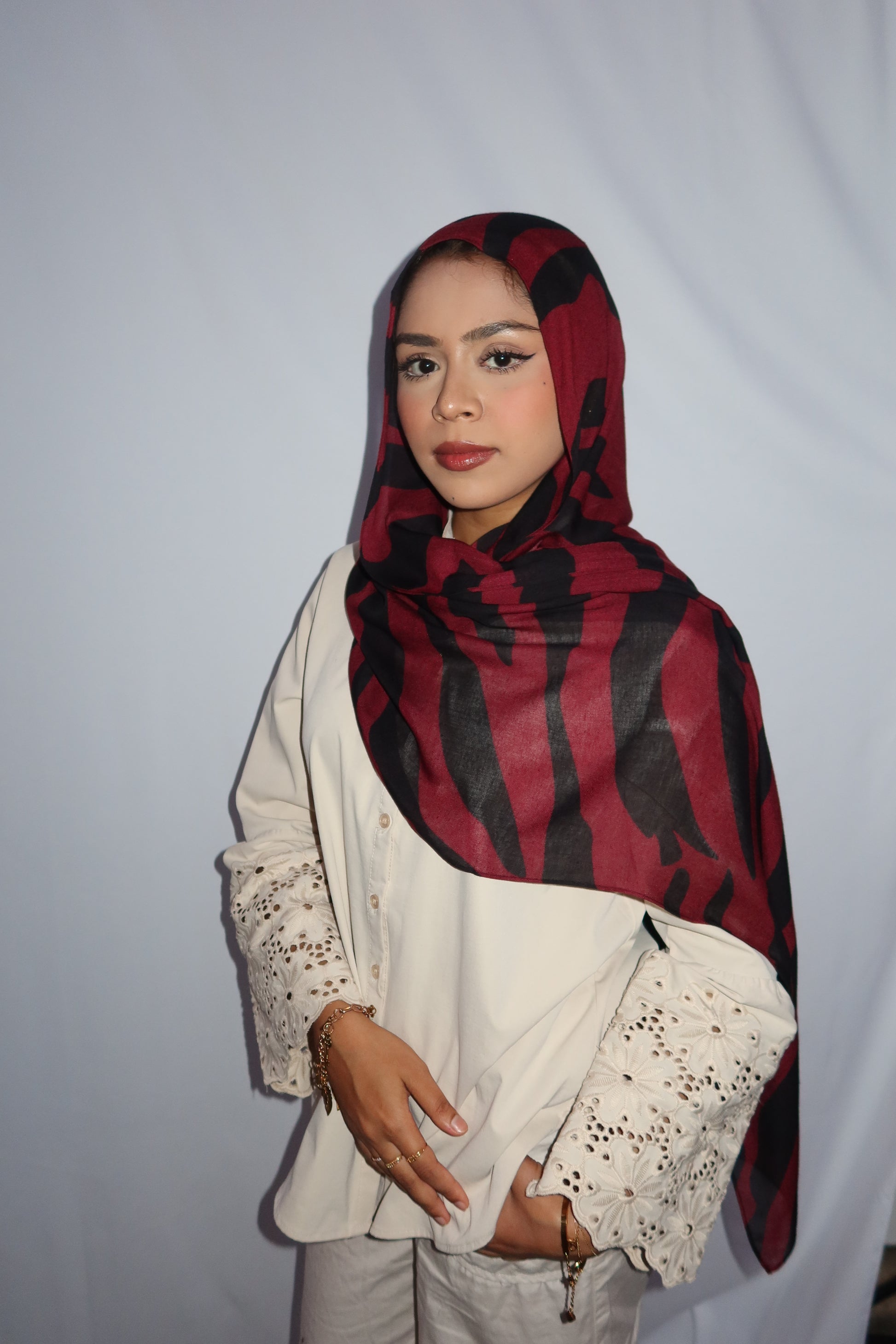 Maroon Paradise: ♥️🖤🌹🍇 This Hijab Features A Rich Burgundy Maroon Base With Deep Black Abstract Stripes Flowing Through The Hijab. The Unique Pattern Adds A Touch Of Sophistication While Keeping It Modern And Effortlessly Stylish. This Print Is Absolutely Gorgeous And A Must Have!