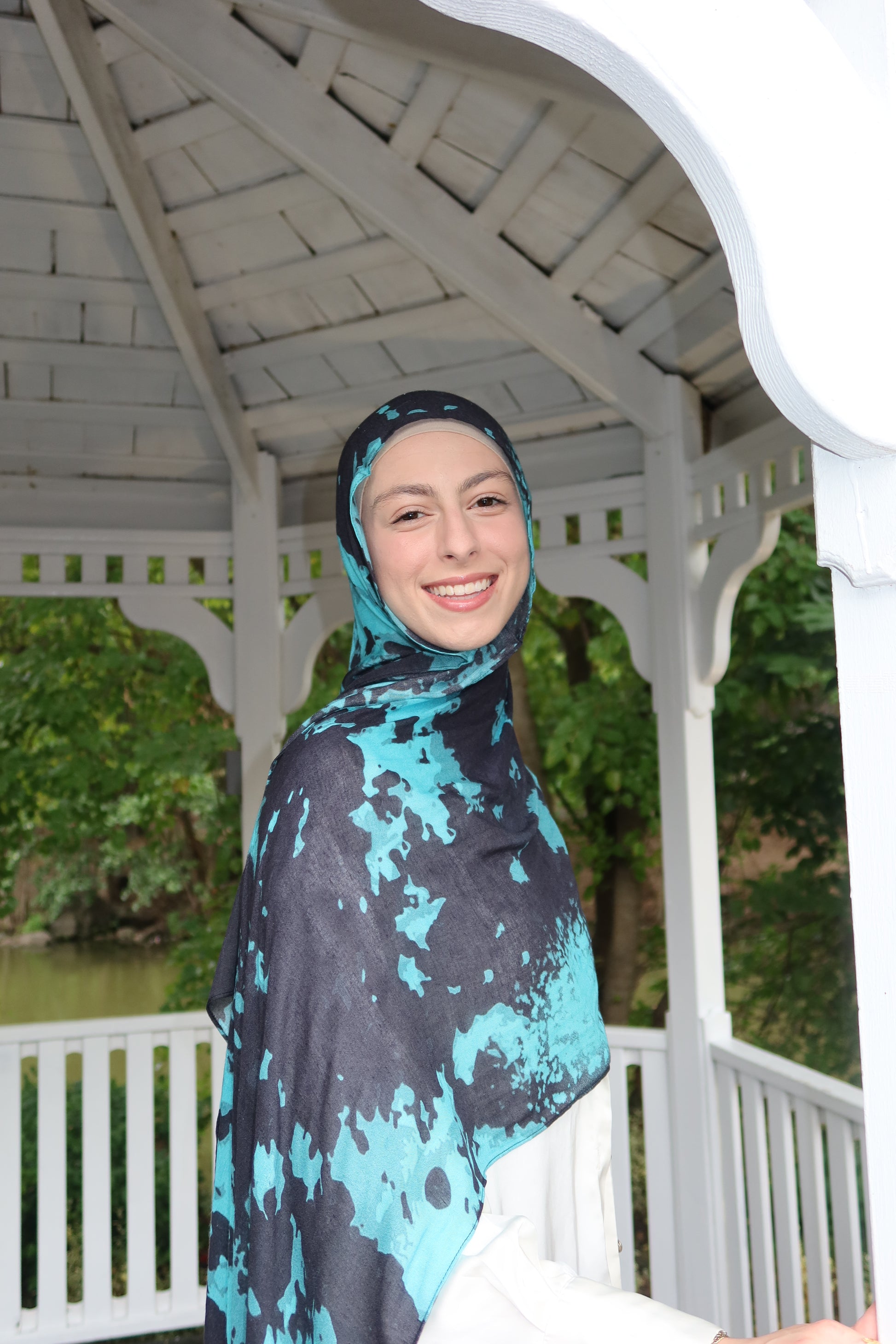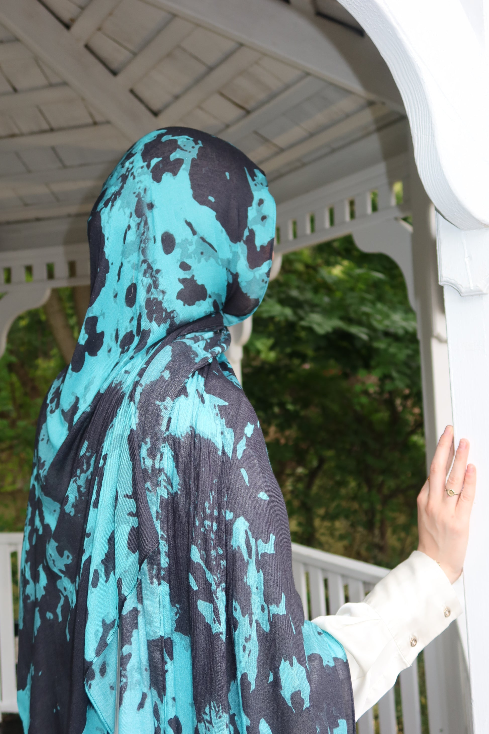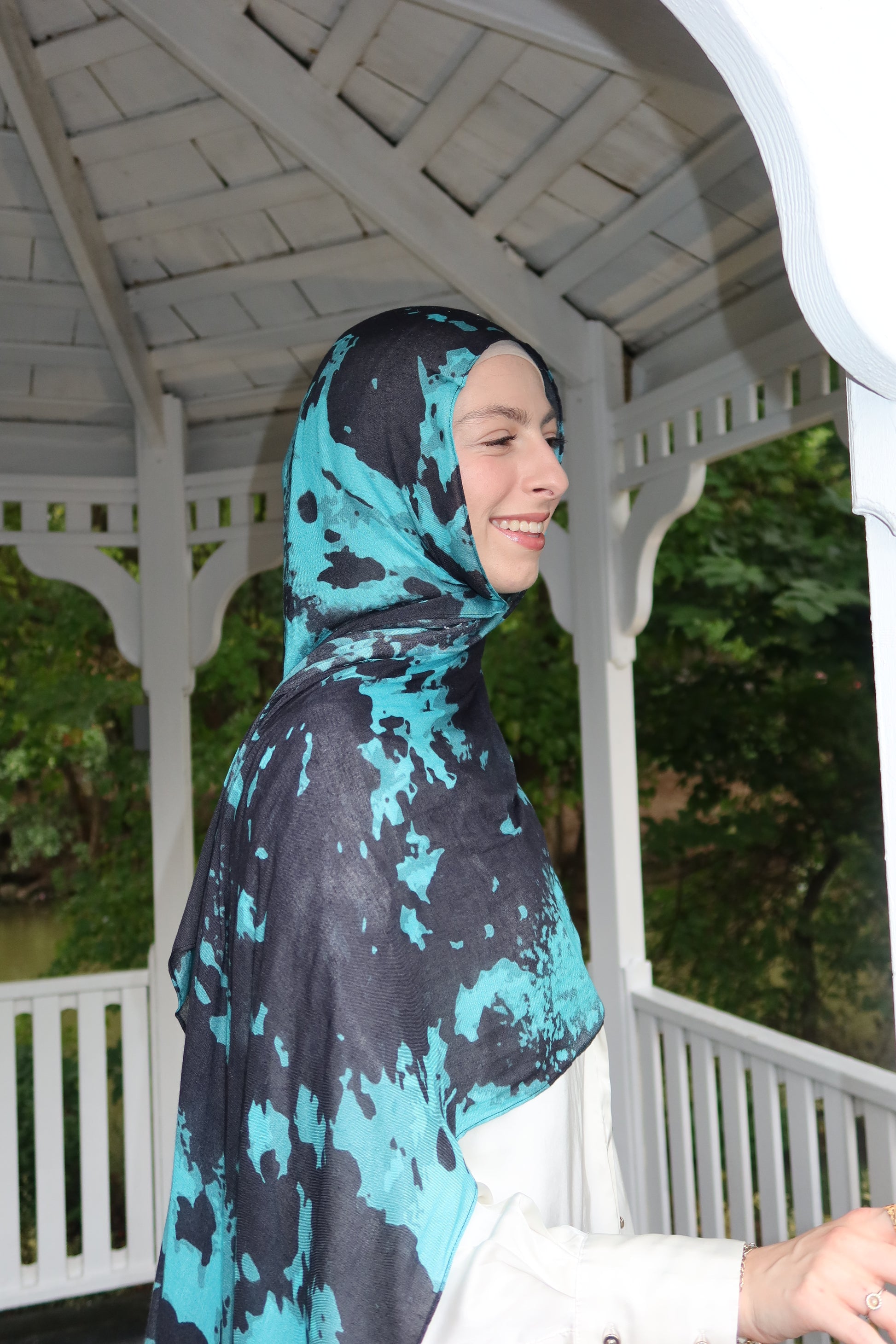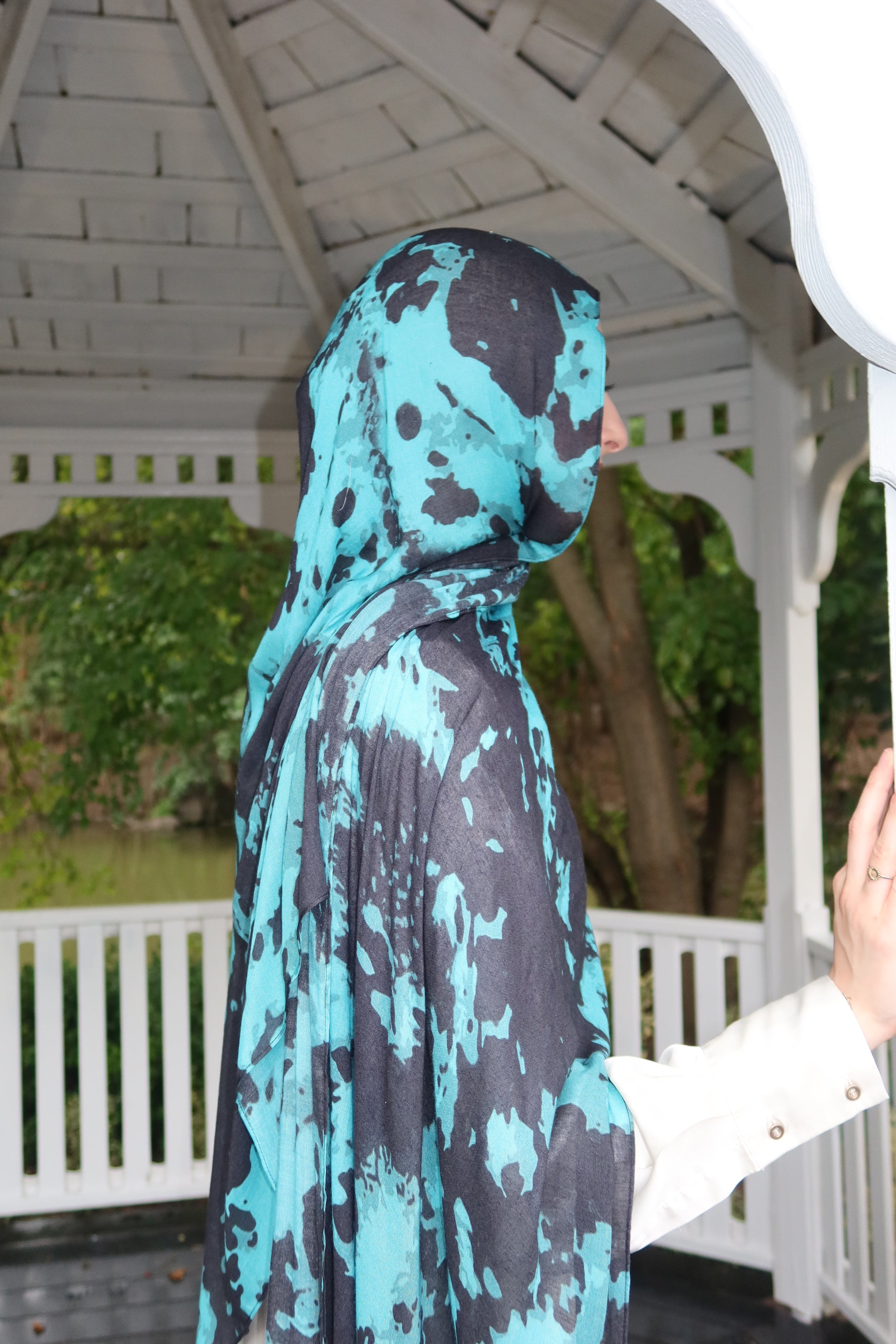 Ink Lagoon: 🩵🖤 This Print Features A Deep Black Base Splashed With Bold Turquoise Tones, Creating A Stunning Abstract Water-Inspired Design. The Mix Of Dark And Vibrant Colors Gives It A Unique, Eye-Catching Look That’s Perfect For Adding A Pop Of Color To Any Outfit.