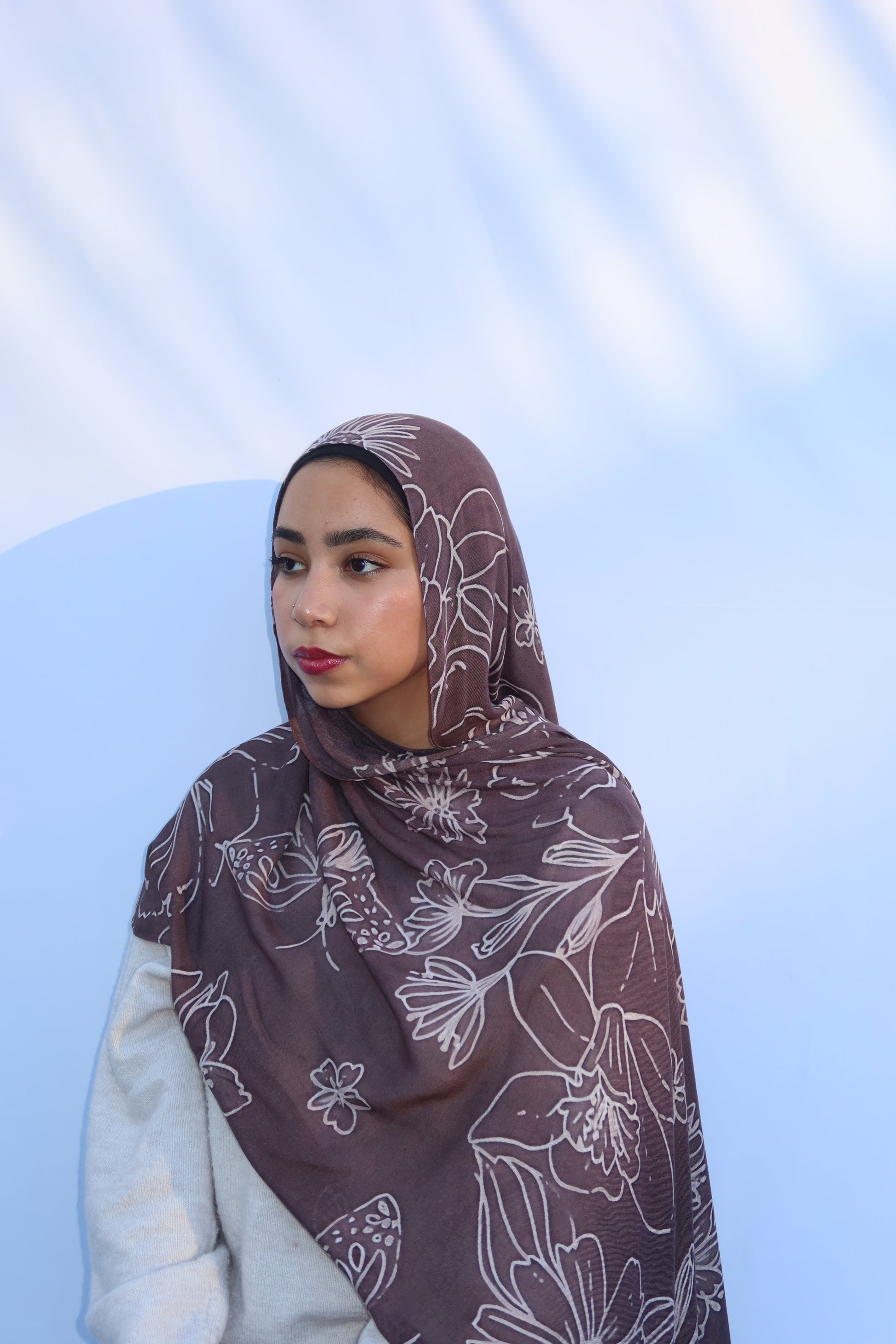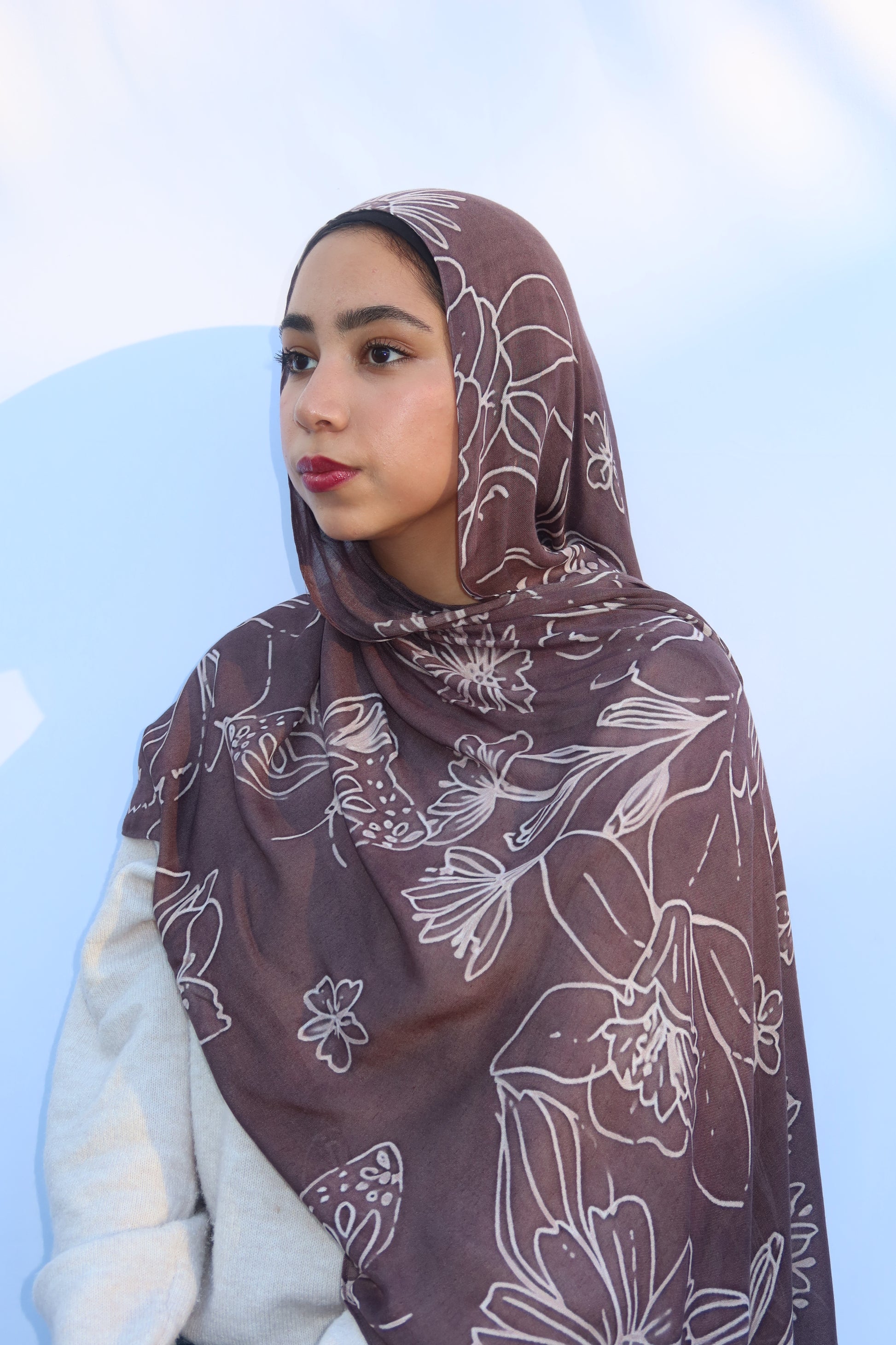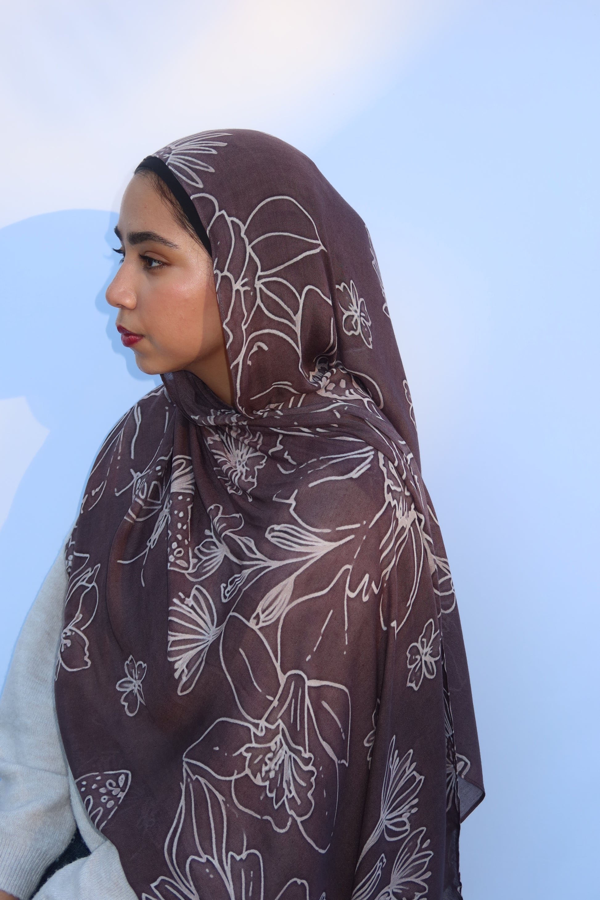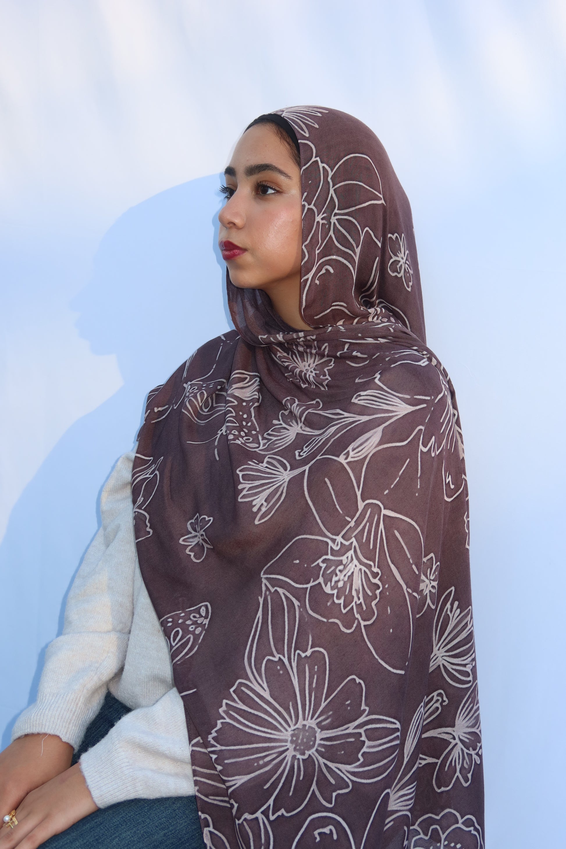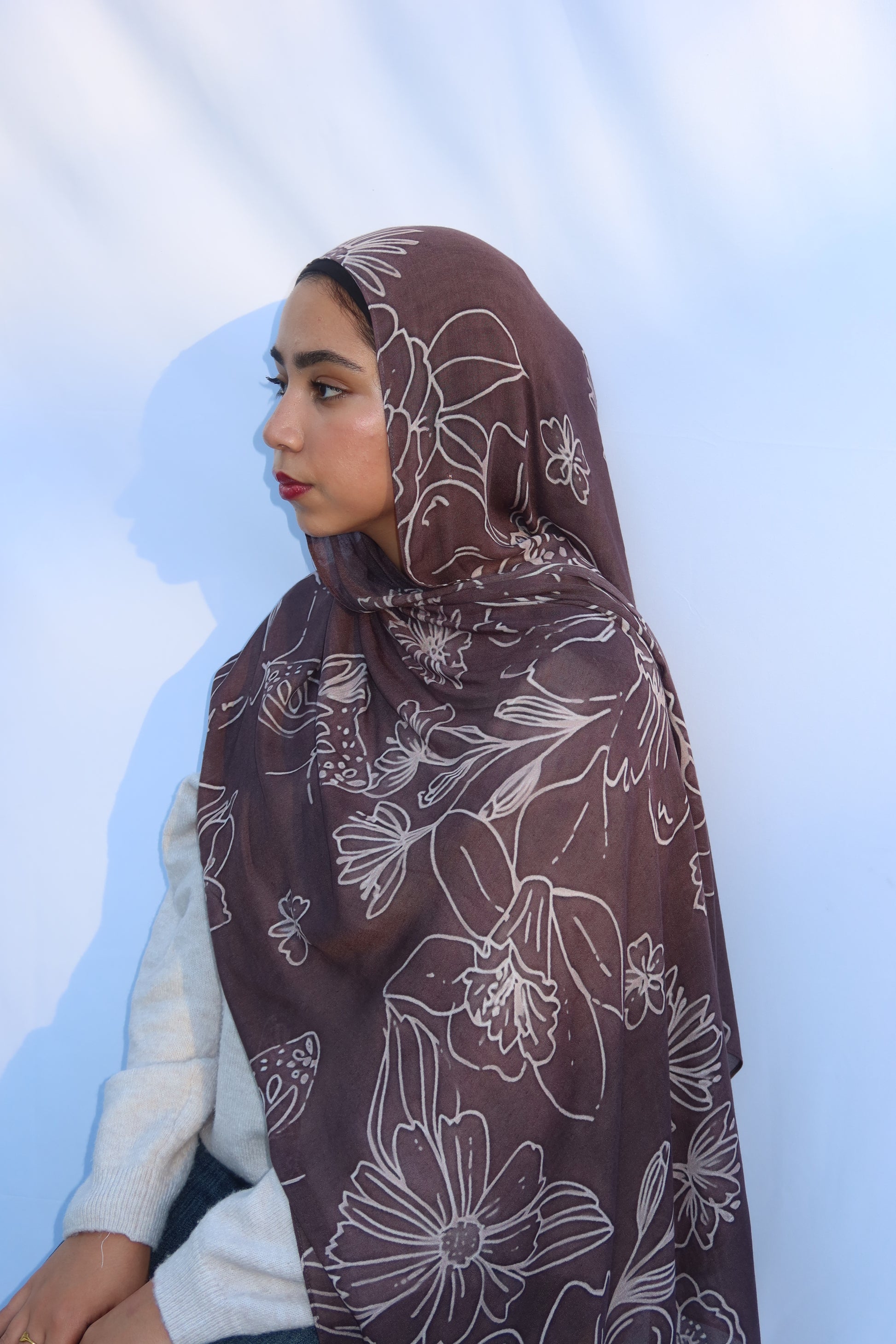 Cocoa Bloom: 🤎🤍 This Print Features A Deep Cocoa Brown Base With Cream Butterfly Floral Outlines Beautifully Spread Across The Scarf. The Design Is Soft, Elegant, And Perfect For The Fall Season. It Pairs Effortlessly With Neutrals Or Bold Shades And Looks Gorgeous On Every Skin Tone, A Must-Have Print For Your Collection.