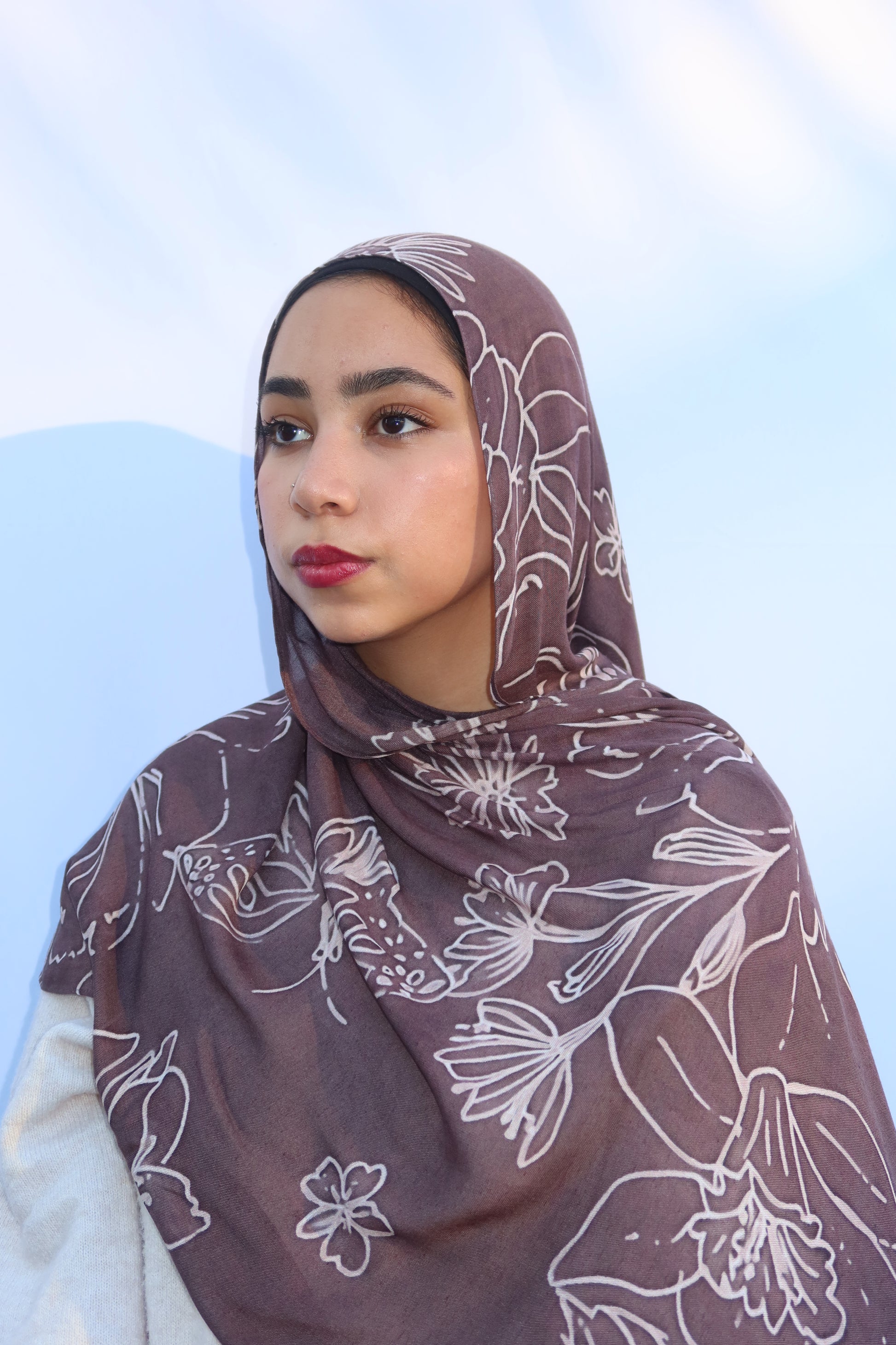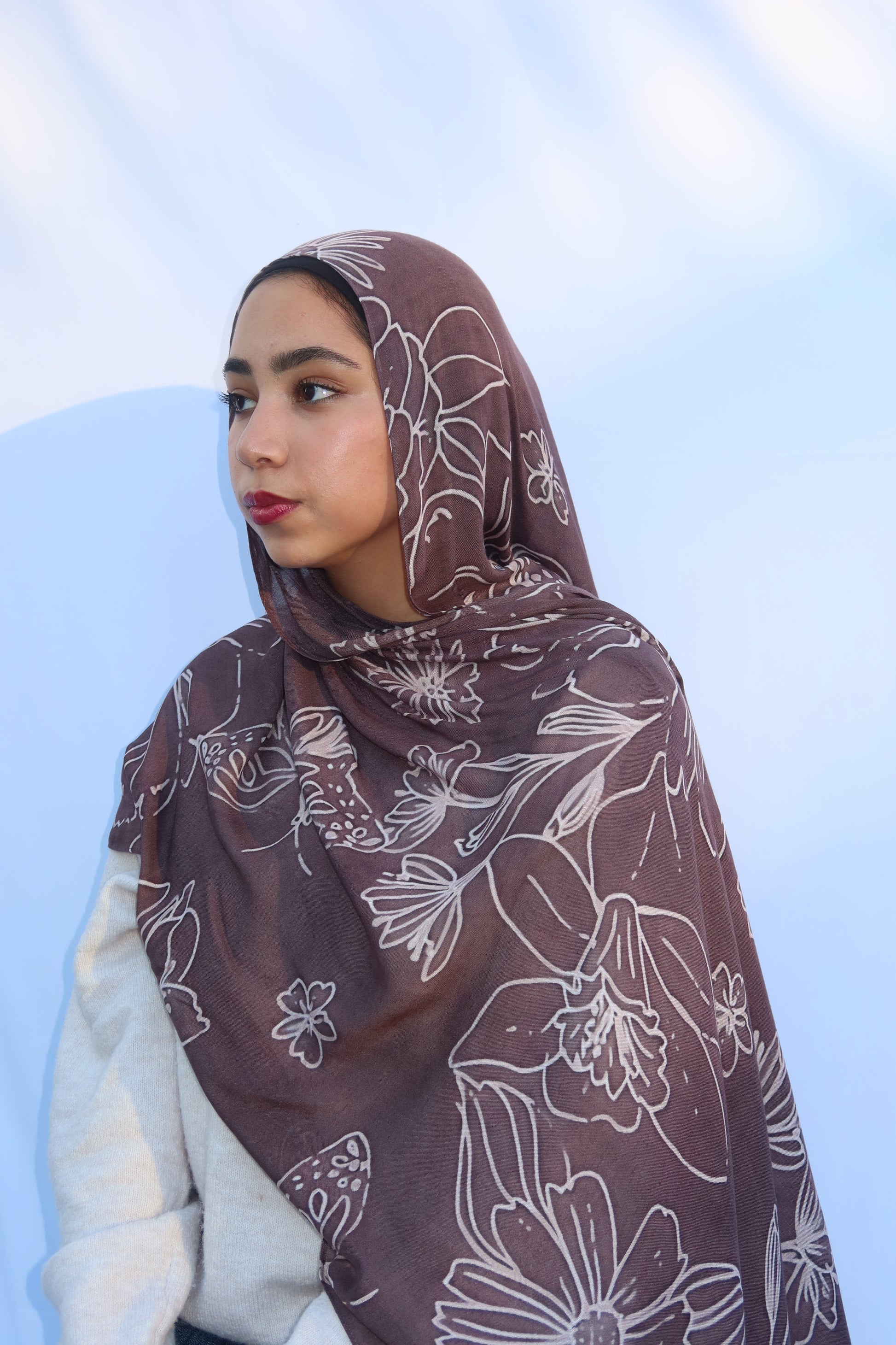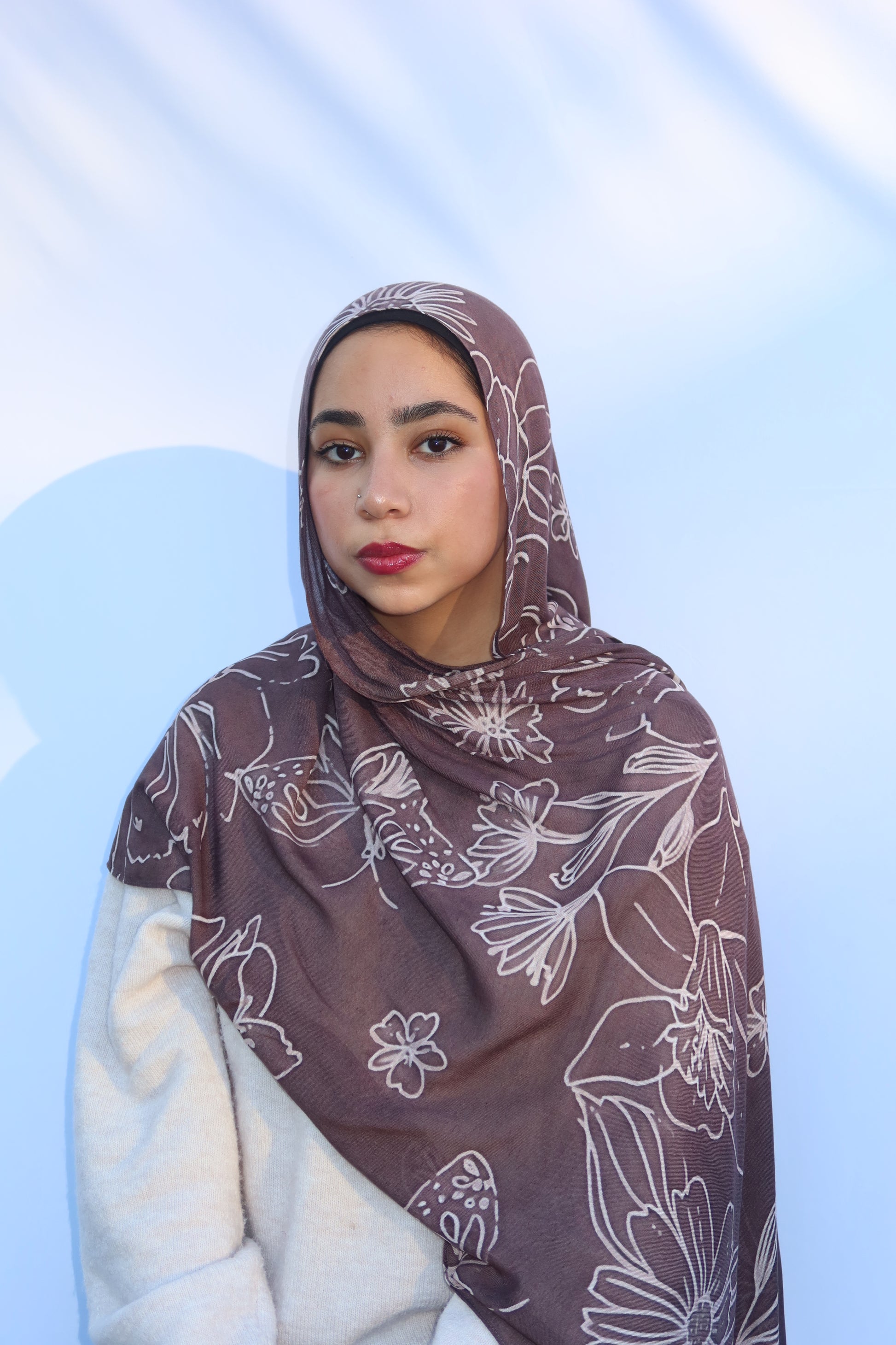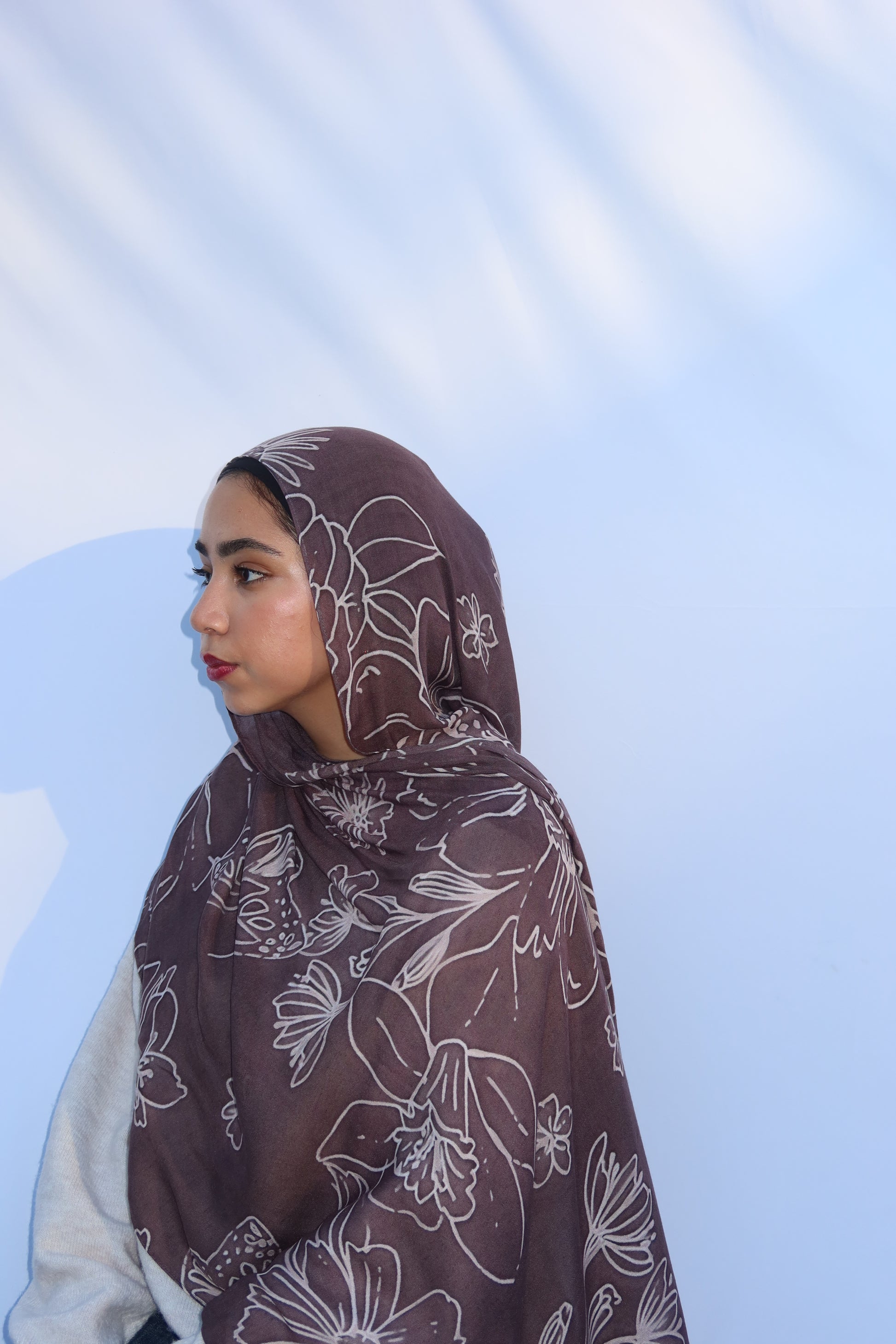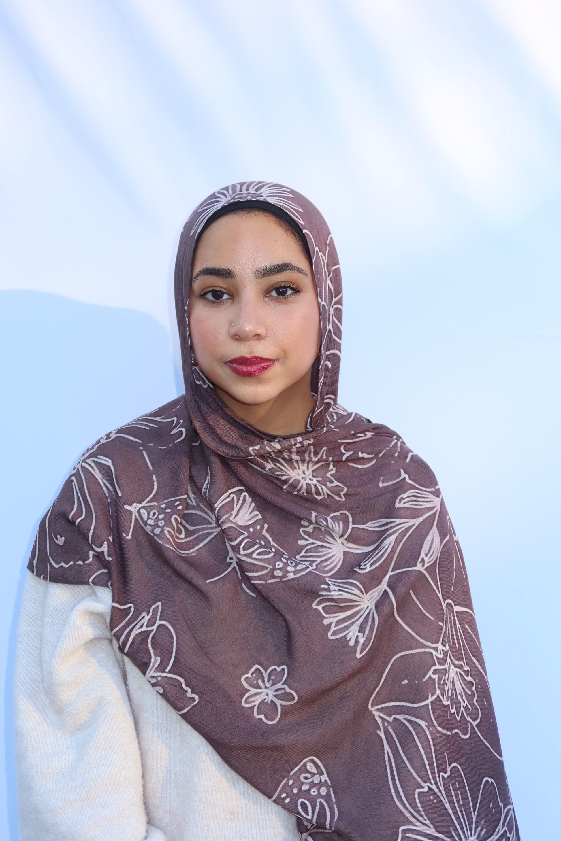 Cocoa Bloom: 🤎🤍 This Print Features A Deep Cocoa Brown Base With Cream Butterfly Floral Outlines Beautifully Spread Across The Scarf. The Design Is Soft, Elegant, And Perfect For The Fall Season. It Pairs Effortlessly With Neutrals Or Bold Shades And Looks Gorgeous On Every Skin Tone, A Must-Have Print For Your Collection.